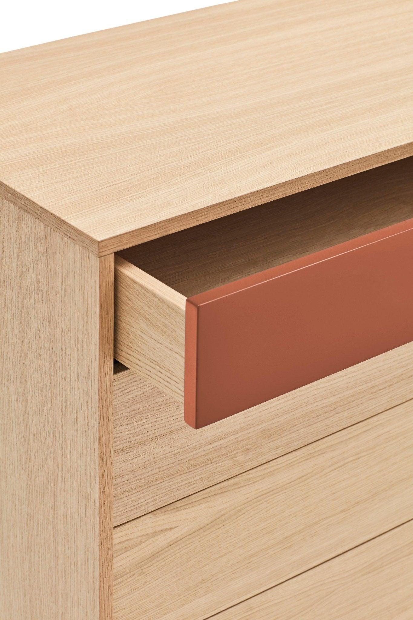 Ak hľadáte komodu, ktorá sa dokonale prispôsobí takmer každému interiéru, a pritom bude praktická a esteticky spracovaná , s radosťou Vám predstavujeme Yoko. Zaujímavý dizajn a netradičné spojenie prírodného dubového dyhy s pastelovým odtieňom červenej, robíkomodu so zásuvkami Yoko jedinečnou.