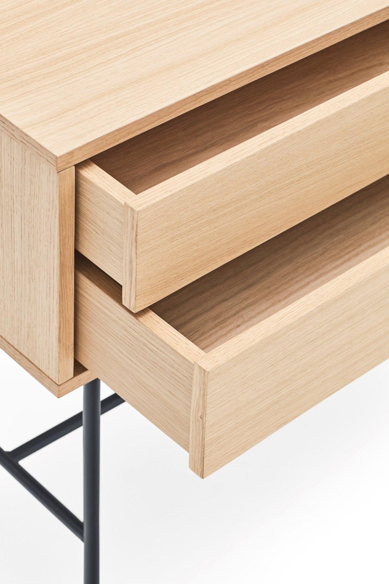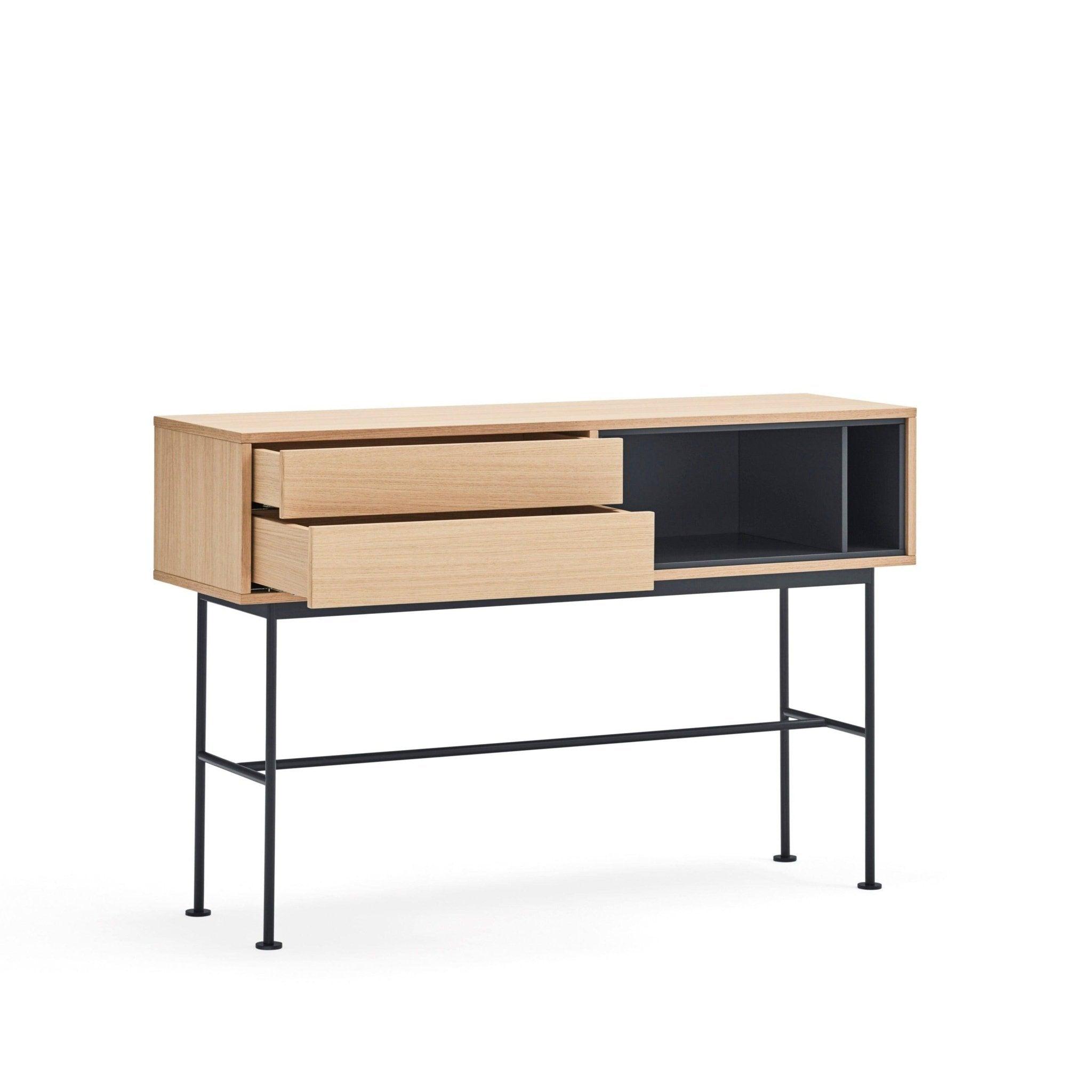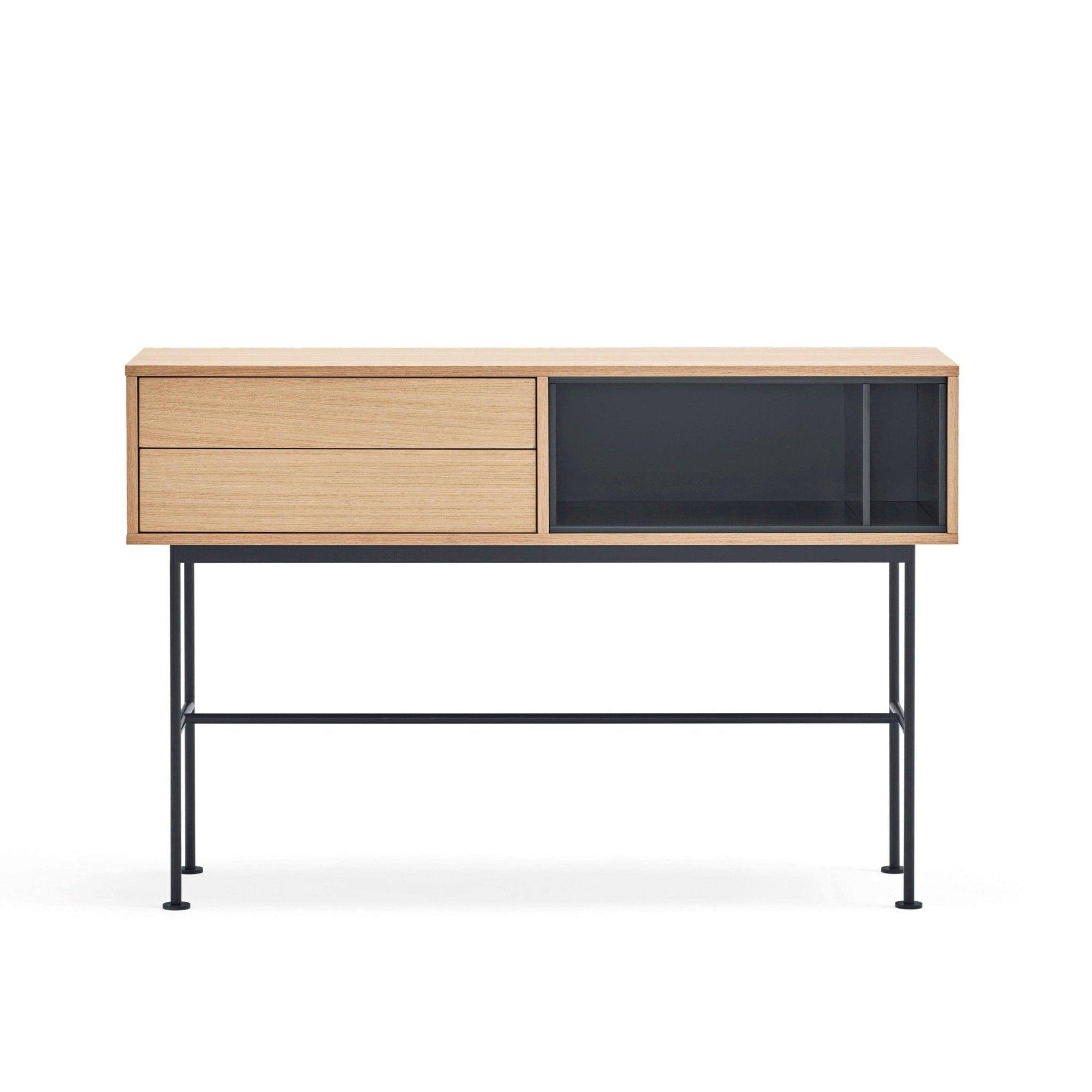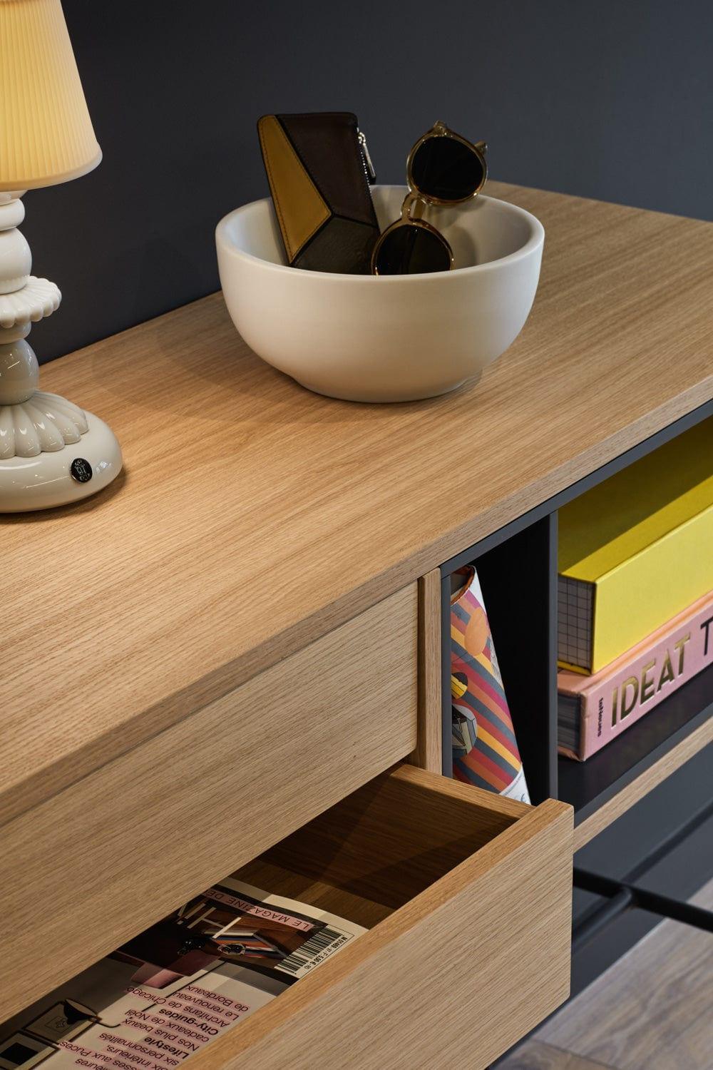 Konsola Yoko pozwoli Ci wyeksponować przedmioty, które same w sobie stanowią ozdobę domu. Innowacyjne podejście do tworzenia mebli oraz tradycja, która jest spoiwem wszystkim projektów hiszpańskiej marki Teulat, jest widoczna w rozwiązaniach takich jak dobór kolorystyczny. Głęboka szarość oraz naturalny fornir dębowy to połączenie, które przyciągnie każde spojrzenie.