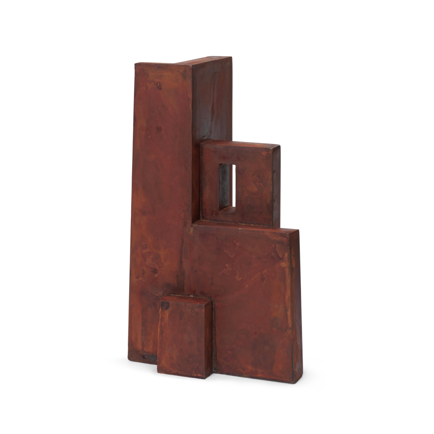 Vyrobená z natieraného kovu, dekorácia sa vyznačuje jedinečnou textúrou a hlbokým, rdzavým odtieňom, ktorý dodáva interiéru teplo a industriálny výraz. Jednoduchá, ale výrazná forma robí z nej dokonalý doplnok do moderných aj klasickejších aranžmánov, prinášajúc do priestoru pokoj a harmóniu.