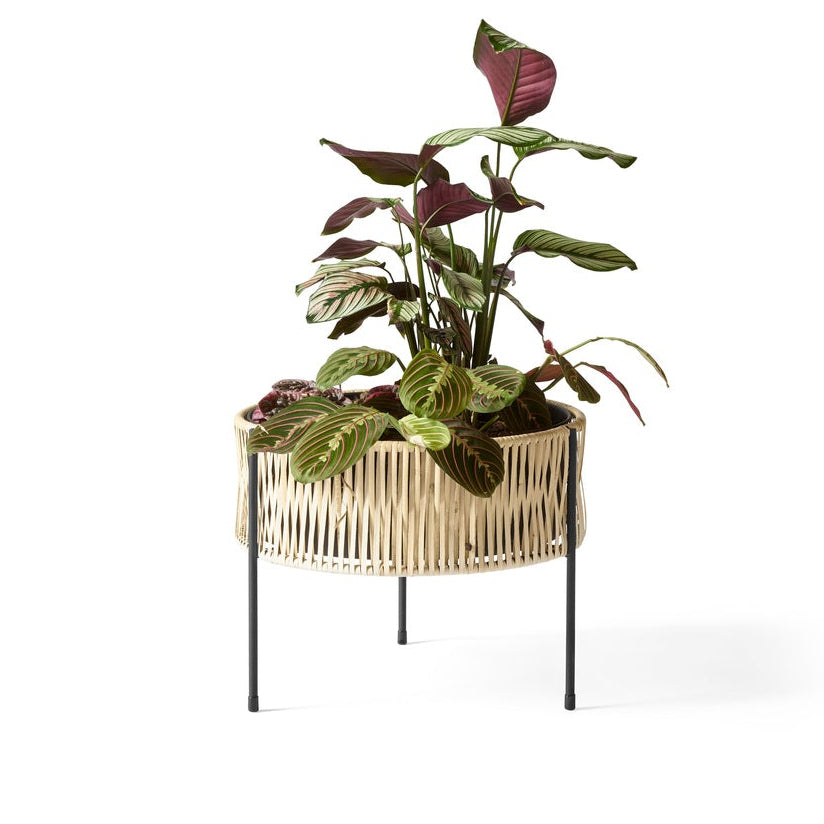 Kvetináč Umanoff je spojenie nadčasového dizajnu s prirodzeným pôvabom remeselnej práce. Navrhnutý v roku 1961 Arthurom Umanoffom – majstrom štýlu stredného storočia – očarí jednoduchosťou formy a elegantným kontrastom materiálov. Štíhla konštrukcia z práškovo lakovanej ocele je kombinovaná s ručne pleteným ratanom, čím vytvára harmonickú rovnováhu medzi modernitou a prírodou. Kvetináč dokonale vystavuje rastliny, dodáva im jedinečný charakter a zdôrazňuje estetiku každého interiéru.