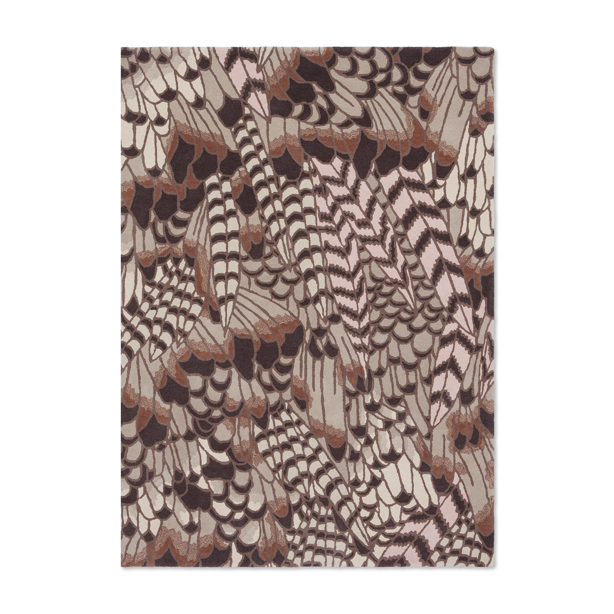 Hnedý koberec Feathers Natural očarí vzorom pierok a elegantnou kombináciou farieb. Vyrobený z vysoko kvalitnej panenskej vlny, je mäkký, odolný a štýlový.