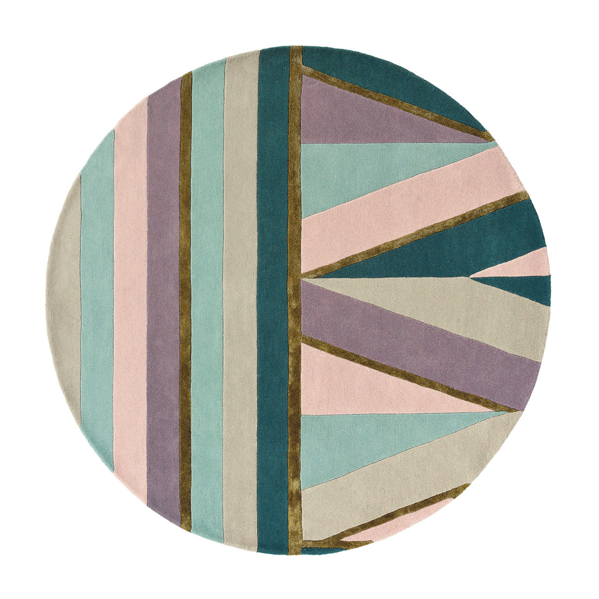Okrúhly koberec je štýlová dekorácia s geometrickým vzorom, ktorá upúta pozornosť výnimočnou kombináciou farieb a precíznosťou spracovania. Vyrobený z najkvalitnejšej vlny, poskytuje mäkkosť, komfort a eleganciu pri každodennom používaní.