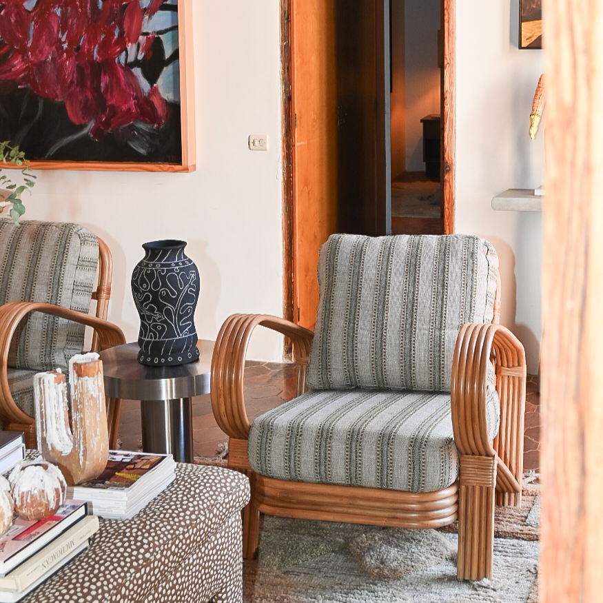 Vďaka univerzálnemu dizajnu fotel Bamboo sa skvele hodí do aranžmánov boho, retro alebo eklektických, pričom im dodáva prirodzené čaro. Hoci bol navrhnutý predovšetkým na vnútorné použitie, môže byť tiež využívaný na zastrešených terasách. Jeho nadčasová forma a kvalitné materiály z neho robia vynikajúcu voľbu pre tých, ktorí si cenia komfort a jedinečný dizajn inšpirovaný prírodou.