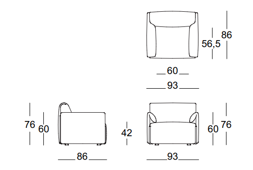 Modulárny prvok môže slúžiť ako samostatný fotel alebo byť súčasťou väčšej súpravy na sedenie. Jednoduchý systém spojenia umožňuje rozšírenie kompozície a pridávanie opierok rúk. Vďaka odnímateľnému poťahu je nábytok ľahko udržiavateľný a prispôsobený každodennému používaniu ako v súkromných, tak aj verejných priestoroch.