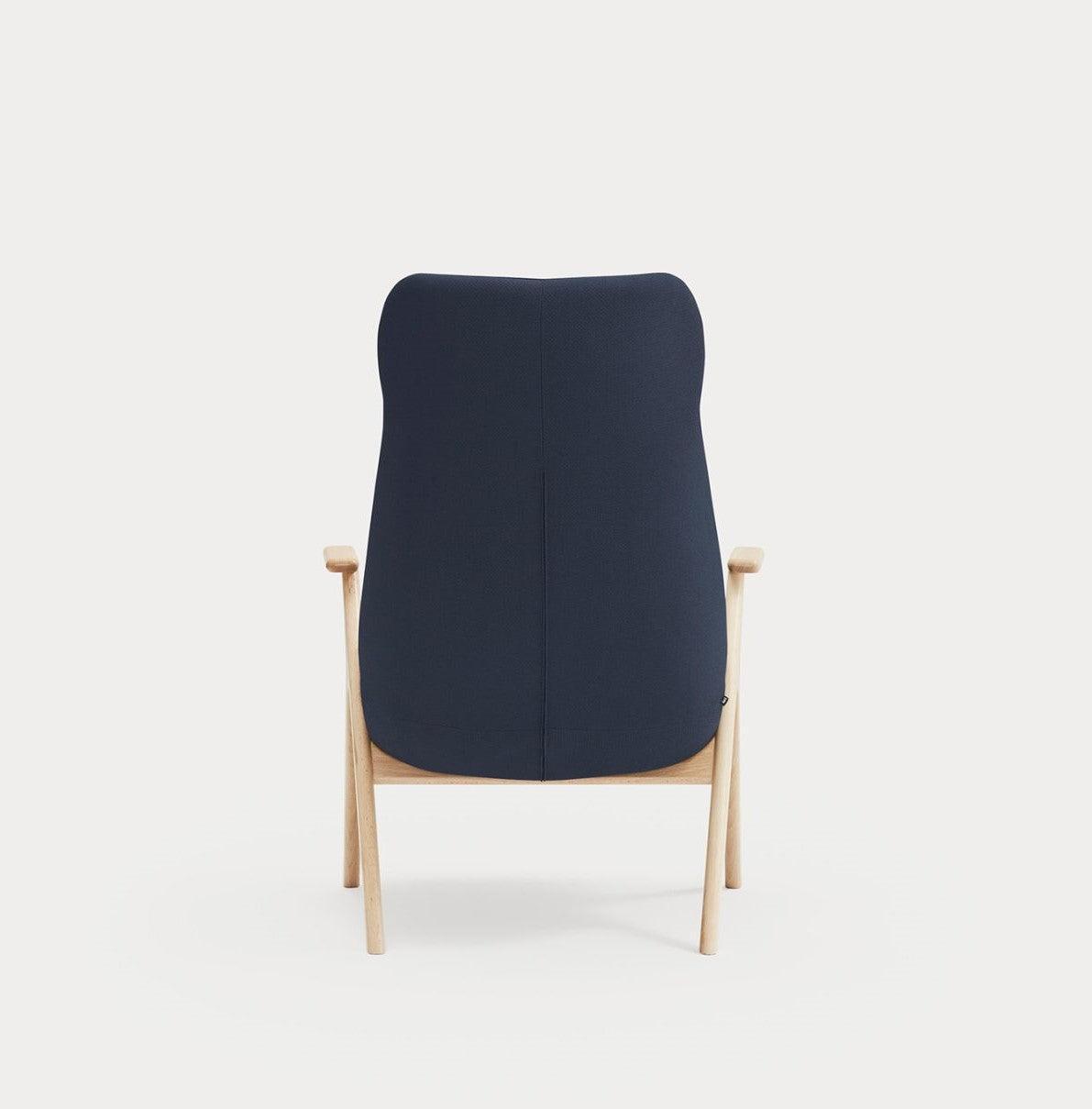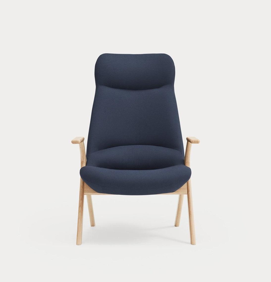 Fotel DINS vysoký tmavomodrý s drevenou základňou
