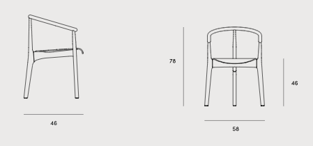 Model je vybavený ergonomicky tvarovaným operadlom a elegantne tvarovanými opierkami rúk, ktoré zabezpečujú komfort pri používaní. Stolička je dostupná v hladkej alebo čalúnenej verzii – s širokým výberom tkanín, emailov a odtieňov dreva. Existuje možnosť vyhotovenia z buka alebo duba, čo ďalej zvyšuje možnosti personalizácie.