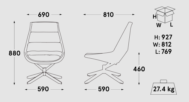 Fotel Fat Frank je synonymom najvyššieho komfortu, vďaka mäkkým vankúšom a otočnej základni, ktorý vás pozýva na úplný relax. Jeho elegantná, zaoblená forma, s hlbokým sedením a skloneným operadlom o 30°, umožňuje pohodlné opretie a otvorenie hrudníka, čo podporuje pohodlné sedenie bez hrbenia sa. Fotel je dostupný na klasickej štvornôžkovej alebo štvorramennej otočnej základni, čo mu dodáva moderný charakter.