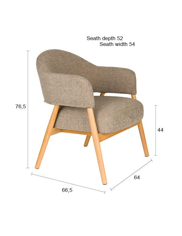 Pridajte do svojho interiéru eleganciu a pohodlie s týmto štýlovým kreslom Indy, ktoré spája moderný dizajn a funkčnosť. Čalúnené mäkkou tkaninou sedadlo v hnedej farbe zabezpečuje pohodlie, zatiaľ čo pevná základňa z dubového dreva pridáva prirodzené čaro. Kreslo sa skvele hodí do obývačky, kancelárie aj spálne, pričom vytvára útulnú atmosféru.