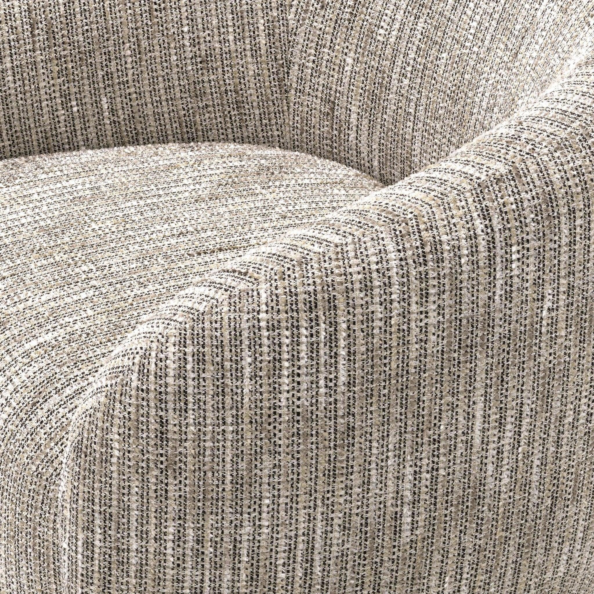 Toto nie je obyčajný béžový fotel - je to rafinovaný doplnok, ktorý premieňa každé interiér na kráľovstvo elegancie. Jeho zakrivené línie a béžová poťahová látka Mademoiselle pripomínajú jemnosť hodvábu, a otočná základňa z brúseného mosadze mu dodáva kráľovský lesk.