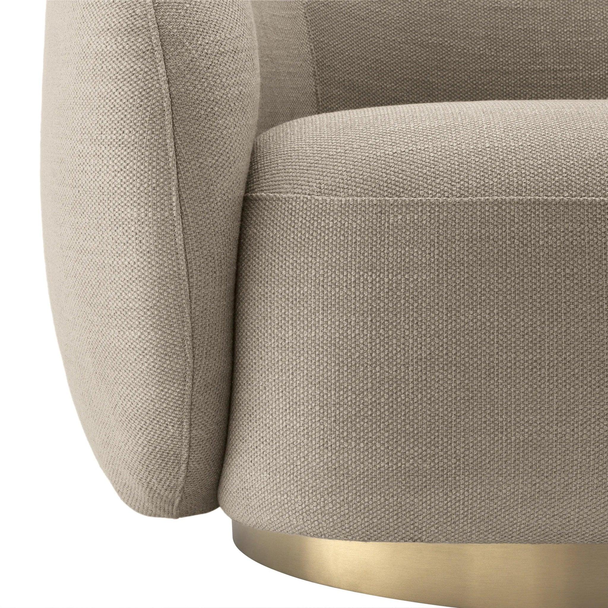 To nie je obyčajný pieskový fotel - je to rafinovaný doplnok, ktorý premieňa každé interiér na kráľovstvo elegancie. Jeho zakrivené línie a piesková čalúnenie Mademoiselle pripomínajú jemnosť hodvábu, a otočná základňa z brúseného mosadze mu dodáva kráľovský lesk.