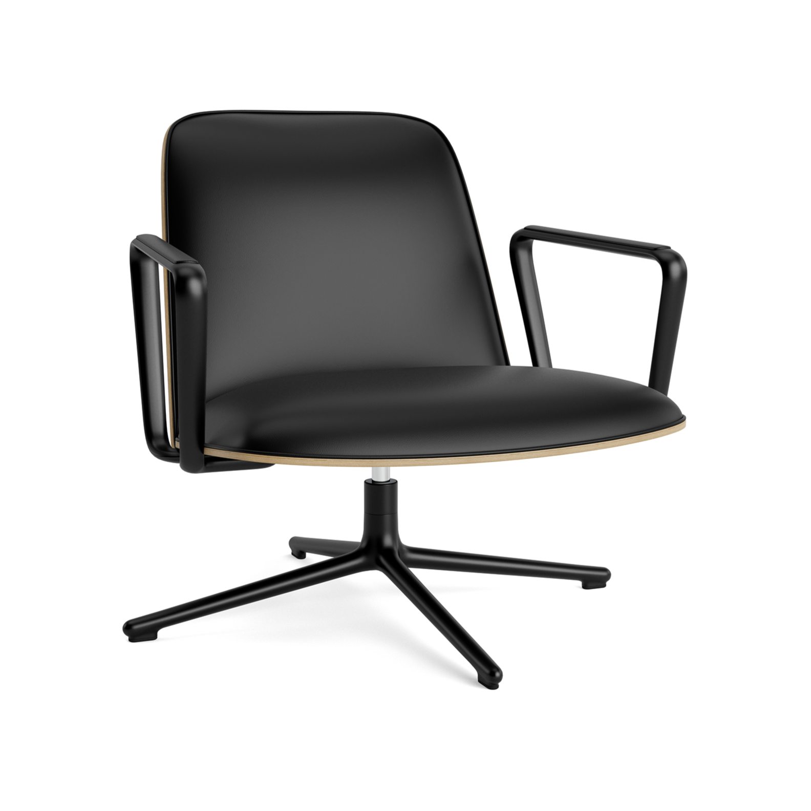 Otočný čalúnený kreslo PAD LOW dubová dyha s čiernym podstavcom