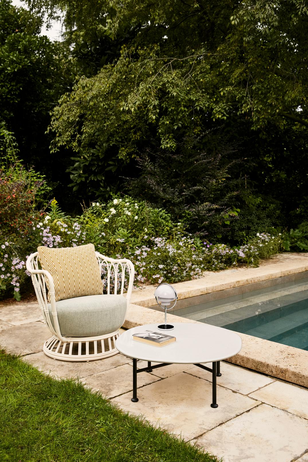 Záhradné kreslo Grace je súčasnou reinterpretáciou skice Tove Kindt-Larsen z roku 1936 — jednej z najvýznamnejších postáv dánskeho modernizmu. Kultový model z kolekcie GUBI očaruje eleganciou, zmyselnou formou a ľahkosťou inšpirovanou prírodou. V novej vonkajšej verzii Grace získava svieži výraz vďaka použitiu inovatívnych materiálov: odolného voči poveternostným podmienkam hliníka s práškovým nástrekom a pleteniny z polyetylénových vlákien, ktoré vizuálne a hmatovo odkazujú na klasický ratan.