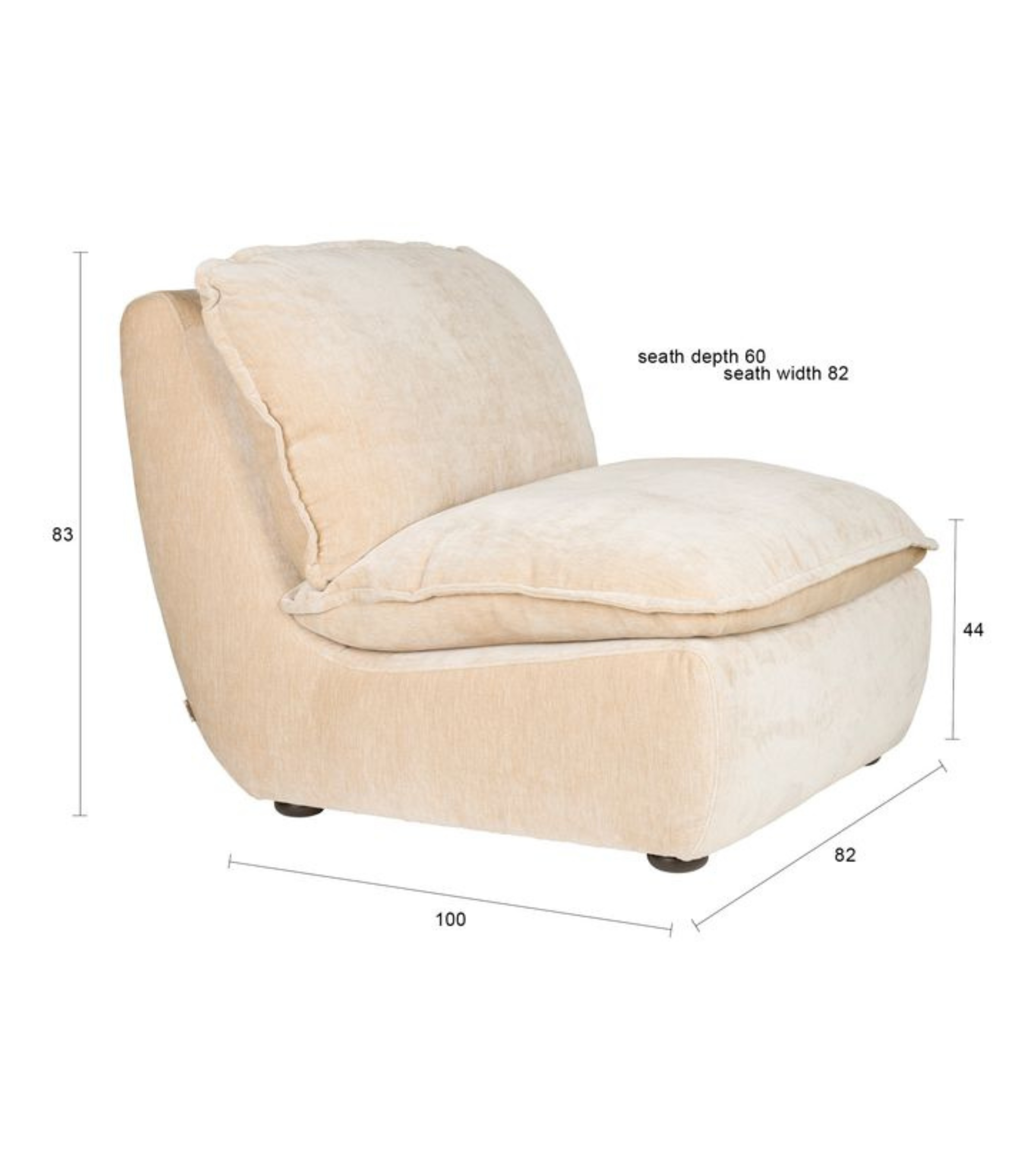 Radley je kreslo, v ktorom sa s radosťou ponoríte na dlhé hodiny. Hrubo čalúnené vankúše sedadla a operadla poskytujú výnimočný komfort, obklopujúc telo ako teplá deka. Napriek mäkkej forme, zvýšené okraje dodávajú celku surový, výrazný charakter. Poťah z zamatovej tkaniny s matným povrchom a okrúhle, drevené nohy tvoria súdržnú kompozíciu inšpirovanú retro interiérmi.