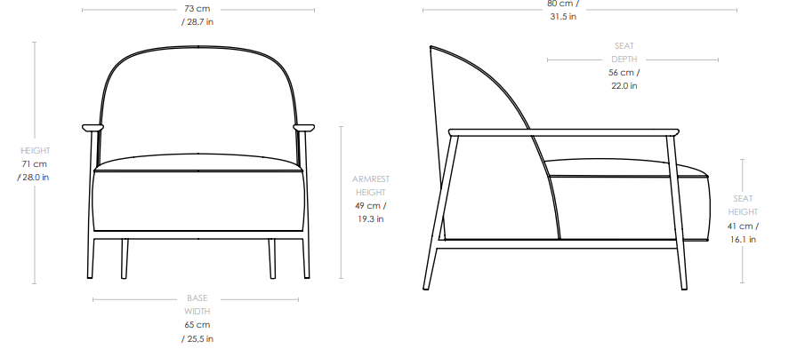 Verzia s podrúčkami bola obohatená o drevené prvky z amerického orecha, ktoré subtílne odkazujú na jemné línie fotela, pridávajúc vizuálnu ľahkosť a umožňujúc rôzne polohy sedenia.