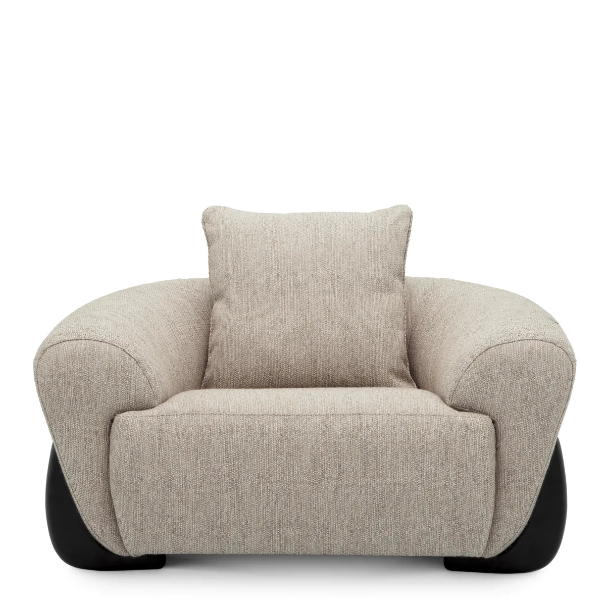 Kontrastné, čierne nožičky mu dodávajú ľahkosť a zdôrazňujú jeho štýlový charakter. Dokonale tvarované sedadlo zabezpečuje pohodlie, vďaka čomu je fotel ideálnym miestom na relaxáciu.