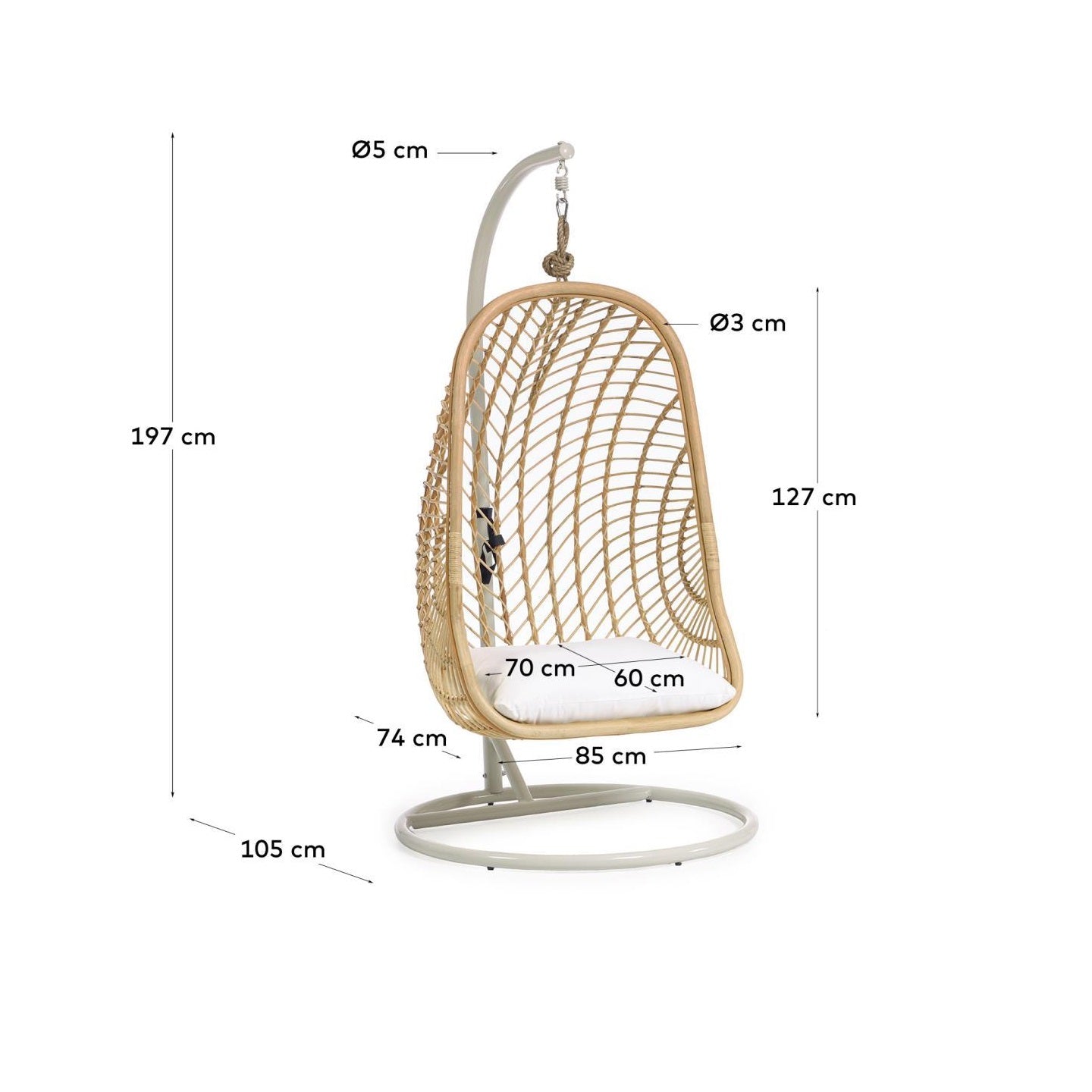 Súprava obsahuje pohodlné vankúše, ktoré zdôrazňujú komfort používania a zabezpečujú ešte hlbší relax. Nezáleží na tom, či sa chcete ponoriť do knihy v útulnosti svojho obývacej izby, alebo si vychutnať rannú kávu na balkóne, naše závesné kreslo vám poskytne potrebnú oporu a pohodlie.