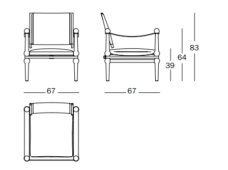 Materiał: lity buk (naturalny lub barwiony), tkanina samonośna, zdejmowana poduszka siedziska, narzuta tekstylna, skórzane podłokietniki, pas z poliamidu, podkładki filcowe