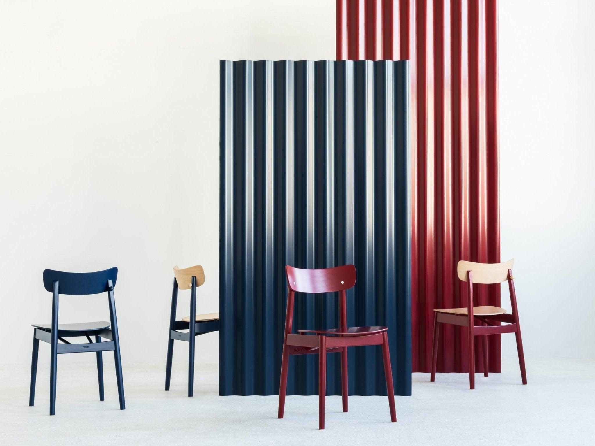 Nopp to seria uniwersalnych krzeseł o lekkiej, prostej, eleganckiej formie wzorniczej i niedużym rozmiarze. Kolekcja daje możliwość personalizacji kolorystycznej – rama, oparcie, siedzisko mogą mieć różny kolor. To pozwala z łatwością dedykować kolekcję do wnętrz o różnorodnym charakterze funkcjonalnym i estetycznym. Kolekcję Nopp wyróżnia charakterystyczny detal w postaci niedużej kulki na tylnej nodze. Kulka stanowi symbol całej serii pełniąc równocześnie funkcję wieszaka na torebkę, kurtkę czy element do zawieszenia spersonalizowanej tabliczki z imieniem. Kolekcję Nopp tworzą: krzesło, krzesło z podłokietnikami, fotel oraz hoker w dwóch wysokościach.