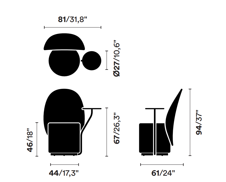 Kreslo zachováva všetky vlastnosti základného modelu: široké operadlo poskytujúce komfort a pocit súkromia, možnosť personalizácie poťahu a snímateľný poťah sedadla. Loomi so stolíkom sa skvele hodí do knižníc, hotelových lobbých, coworkingových priestorov či moderných domácich interiérov.