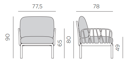 Exteriérové kreslo Komodo je štýlový a pohodlný návrh pre tých, ktorí hľadajú komfortné miesto na relaxáciu vonku. Jeho moderná forma a precízne proporcie zabezpečujú, že sa skvele hodí ako samostatný kus nábytku, tak aj ako súčasť väčších modulárnych aranžmánov. Vďaka premyslenej konštrukcii kreslo môže byť kombinované s inými modulmi kolekcie Komodo, čo umožňuje vytváranie súvislých a funkčných usporiadaní prispôsobených charakteru priestoru.