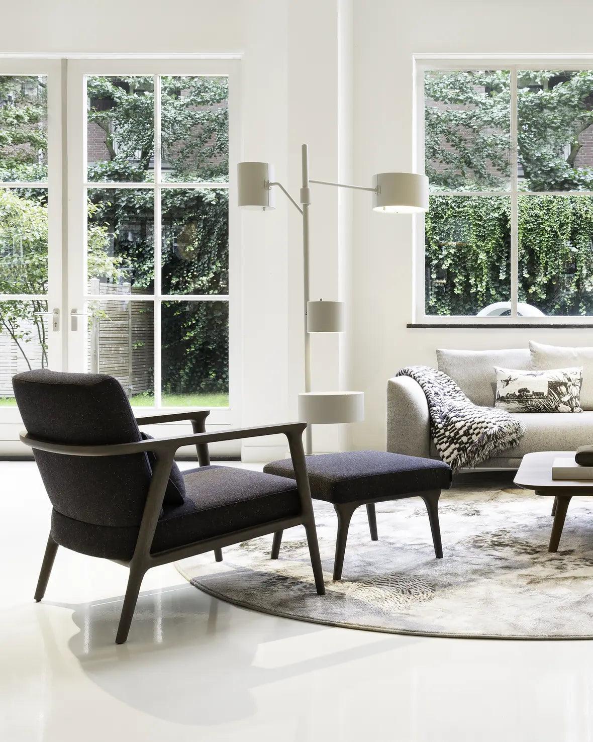 Kreslo Zio je dostupné v rôznych farbách a modeloch, ponúkajúce výber z 590 tkanín. Kreslo Zio Lounge spája silný, a zároveň ľahký vzhľad moreného duba s krásou organických tvarov, dokončených jednoduchými, modernými rezmi.