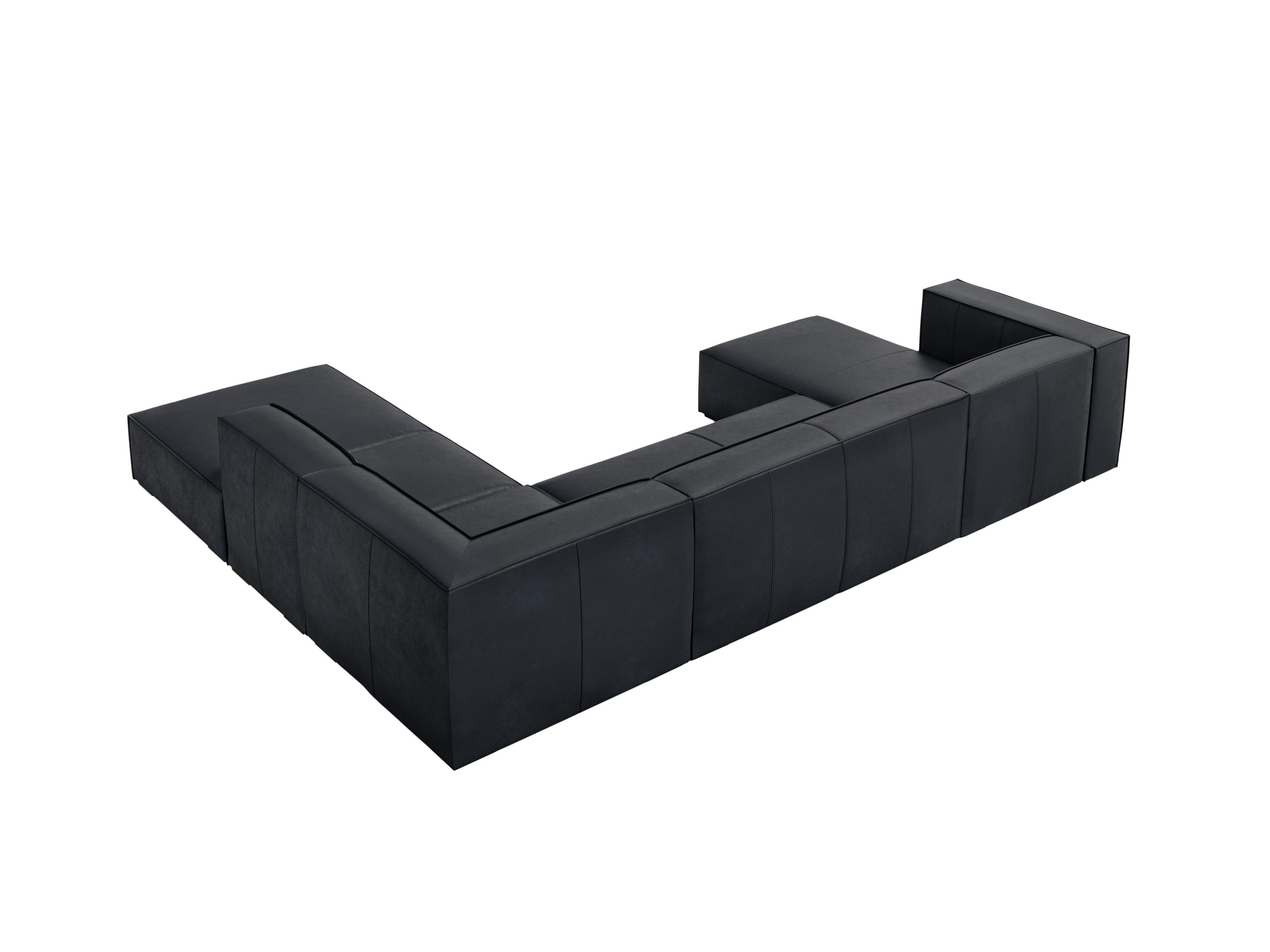 Kožený rohový panoramatický Madame je ideálnym spojením elegancie s nadčasovou formou. Geometrická, trochu surová konštrukcia sa skvele hodí do interiérov moderného klasického štýlu s nádychom modernosti. Dekoratívne prešívanie na koženej čalúnení dodáva celku mimoriadny charakter. Drevené nožičky z bukového dreva nielenže krásne vyzerajú, ale tiež tvoria pevnú základňu.