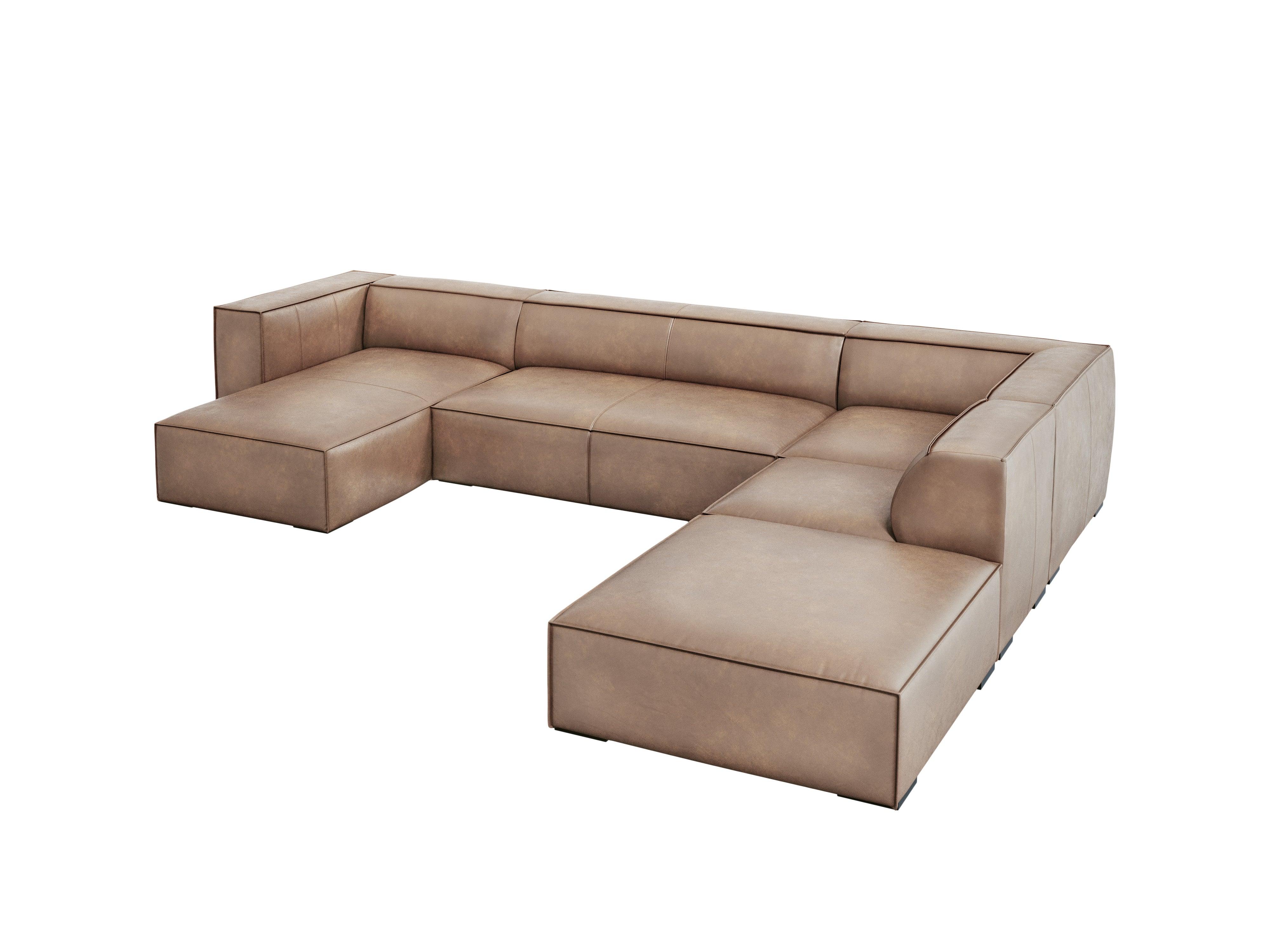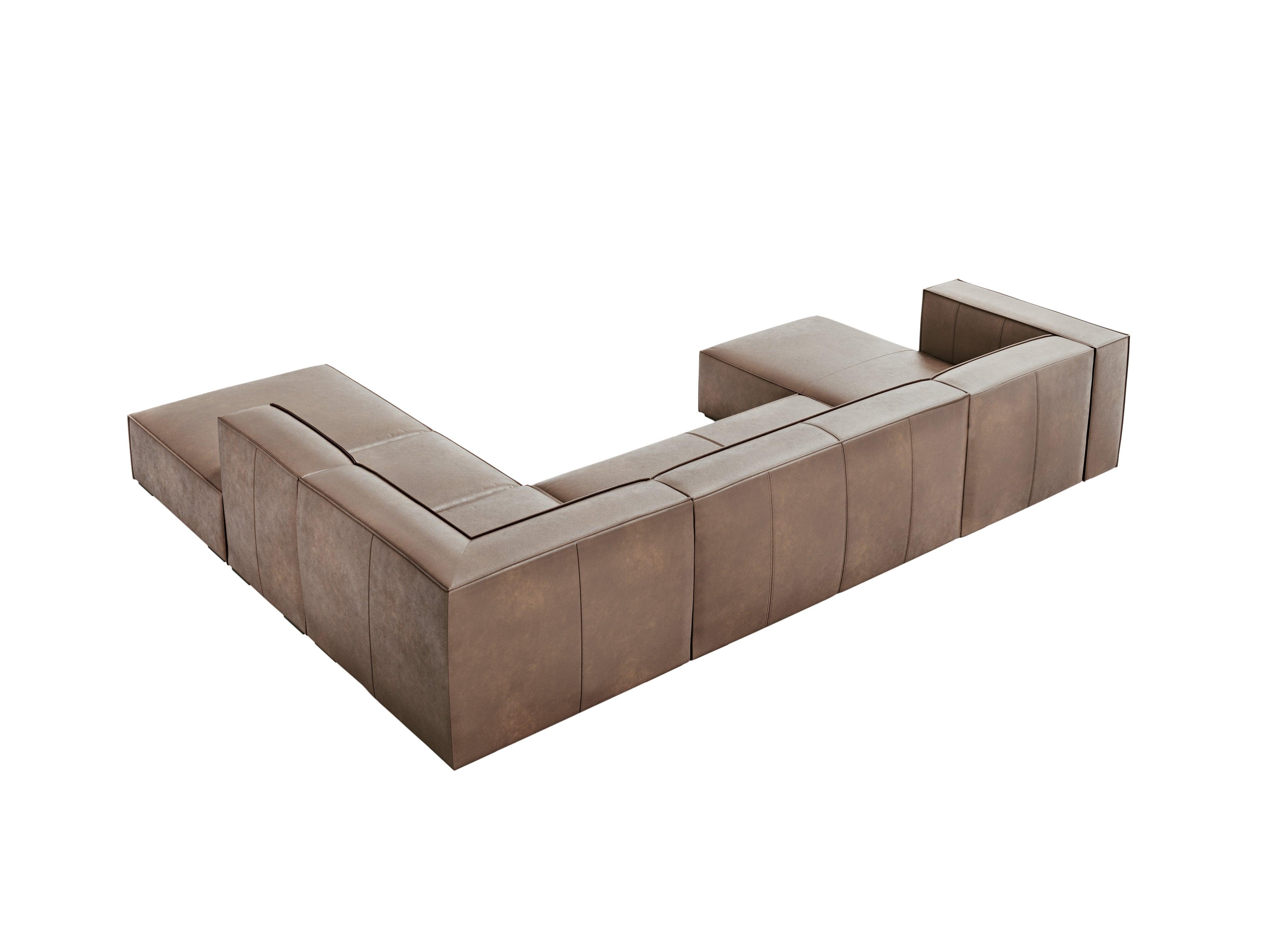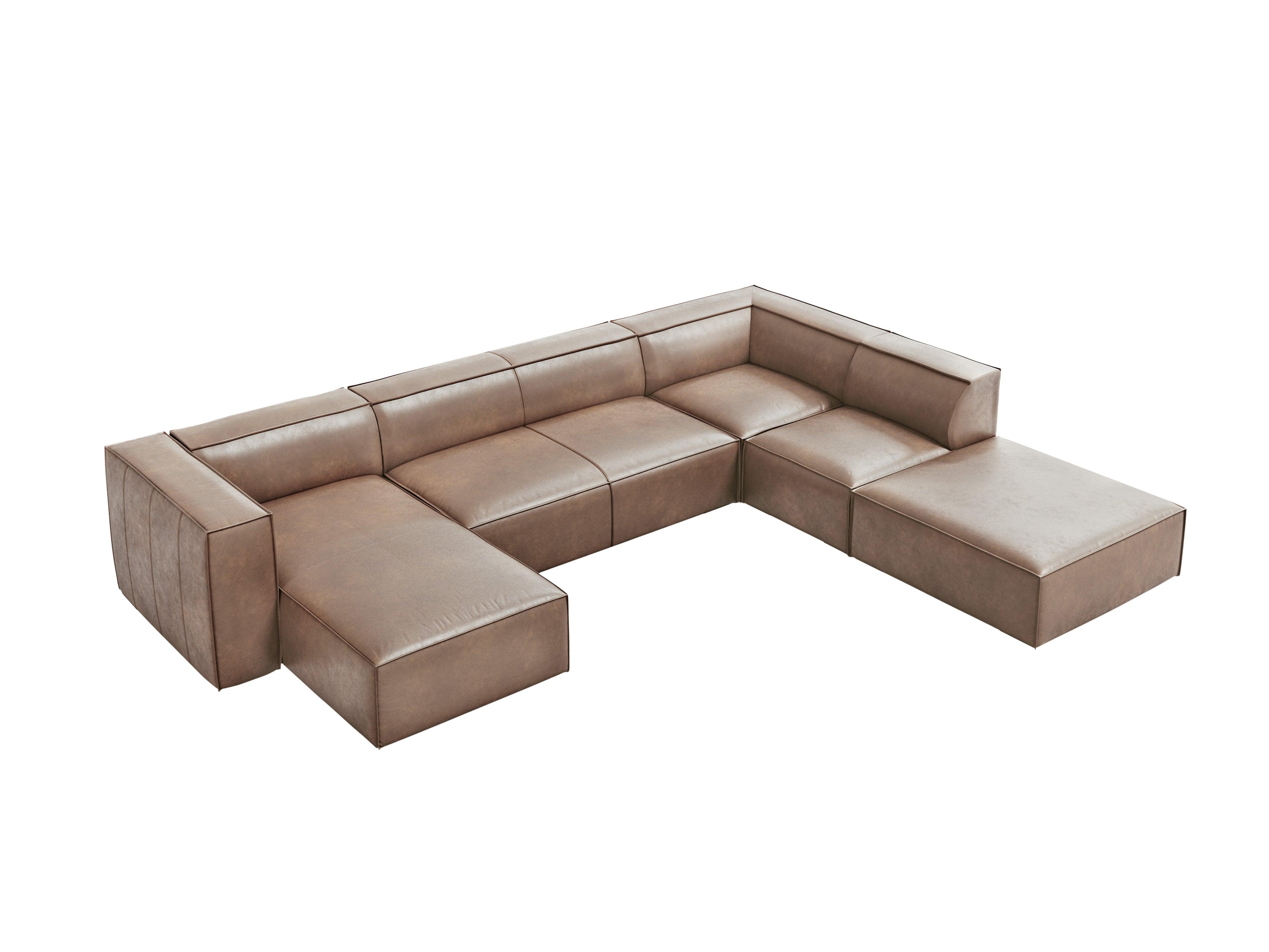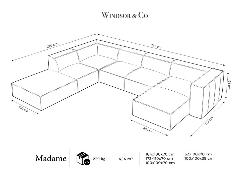 Kožený rohový panoramatický Madame je ideálnym spojením elegancie s nadčasovou formou. Geometrická, trochu surová silueta sa skvele hodí do interiérov moderného klasického štýlu s nádychom modernosti. Dekoratívne prešívanie na koženej čalúnení dodáva celku mimoriadny charakter. Drevené nožičky z bukového dreva nielenže krásne vyzerajú, ale tiež tvoria pevnú základňu.