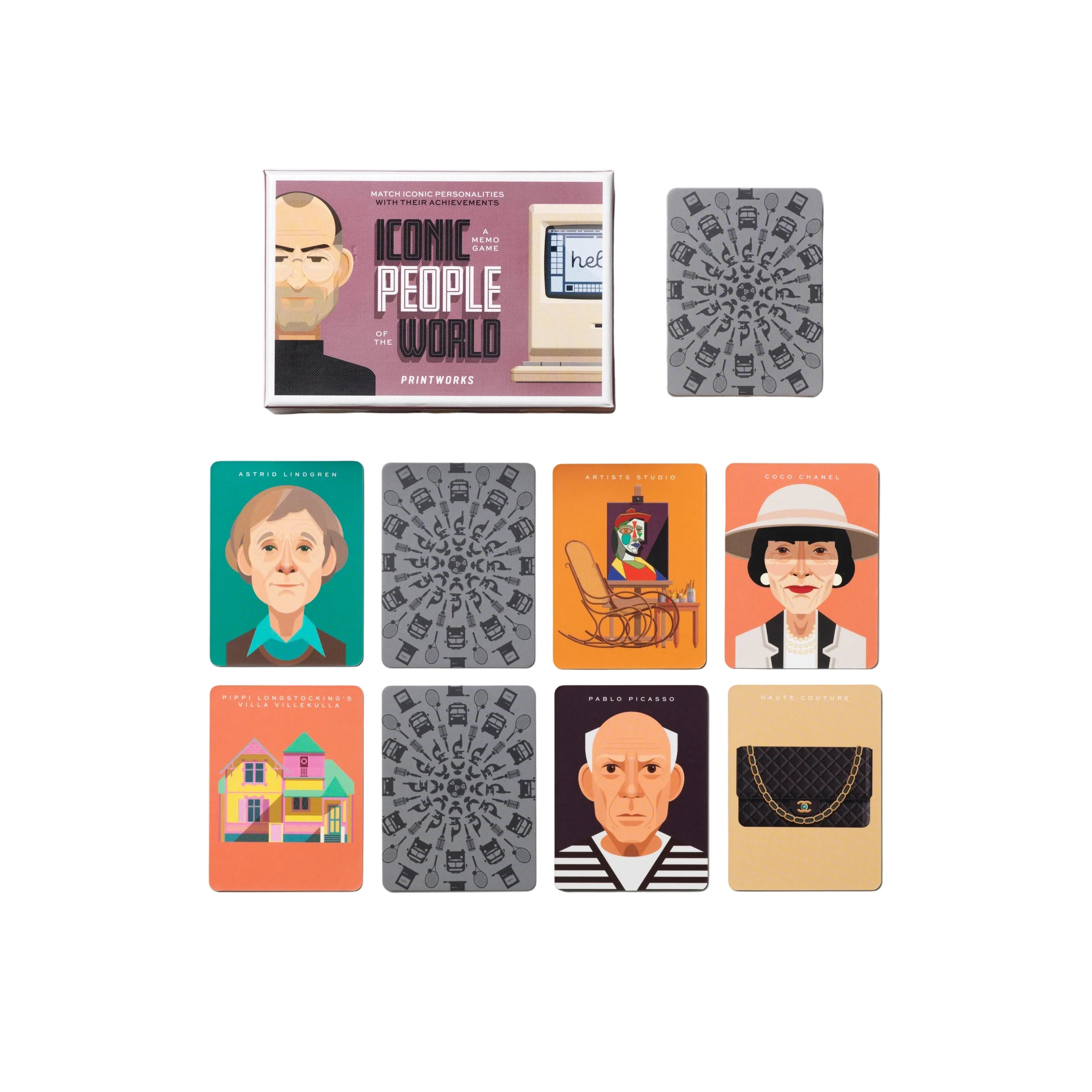 Gra memory Memo Hra Ikonické Osoby s motívom známych postáv je vzdelávacia a inšpirujúca zábava, ktorá spája hru s poznávaním histórie a úspechov výnimočných osobností. Úlohou hráčov je priradiť postavy k ich úspechom, čo rozvíja pamäť, pozorovacie schopnosti a vedomosti o svete. Je to skvelý návrh pre deti aj dospelých, ktorí sa chcú učiť prostredníctvom zábavy.