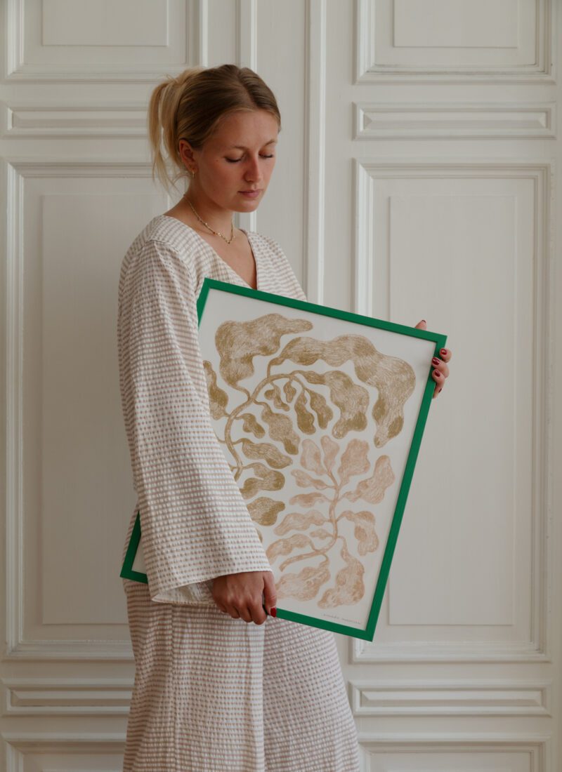 Umelecká grafika The Two, od autorky Linnéi Andersson, bola navrhnutá exkluzívne pre The Poster Club. Vyrobená na vysoko kvalitnom prírodnom umeleckom papieri s gramážou 265 g, s matným, nepovrchovým dokončením a jemne textúrovaným povrchom, grafika sa vyznačuje bohatstvom a intenzitou farieb.