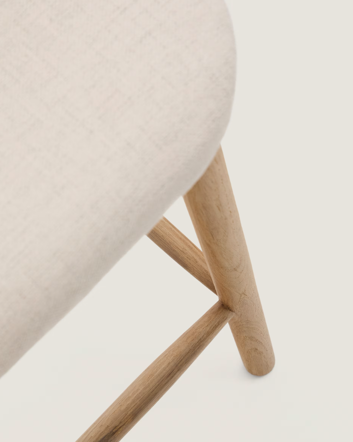 Helda to ręcznie wykonany hoker z litego drewna bukowego, który łączy ponadczasowy design z nowoczesnym komfortem. Jego naturalne wykończenie olejowane podkreśla piękno drewna i zapewnia długowieczność mebla. Siedzisko i oparcie zostały tapicerowane wodoodporną tkaniną szenilową, dzięki czemu Helda jest nie tylko elegancki, ale także praktyczny i łatwy w utrzymaniu.