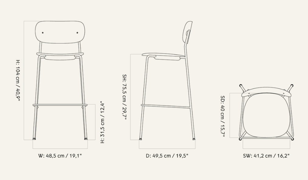 Štíhla, no stabilná konštrukcia hokera je doplnená o praktický opierku na nohy, ktorá zvyšuje komfort sedenia. Nábytok očarí precíznosťou spracovania a minimalistickým charakterom, vďaka čomu sa skvele hodí ako do domácej jedálne, tak aj do komerčných priestorov – od elegantných barov po štýlové kancelárie.