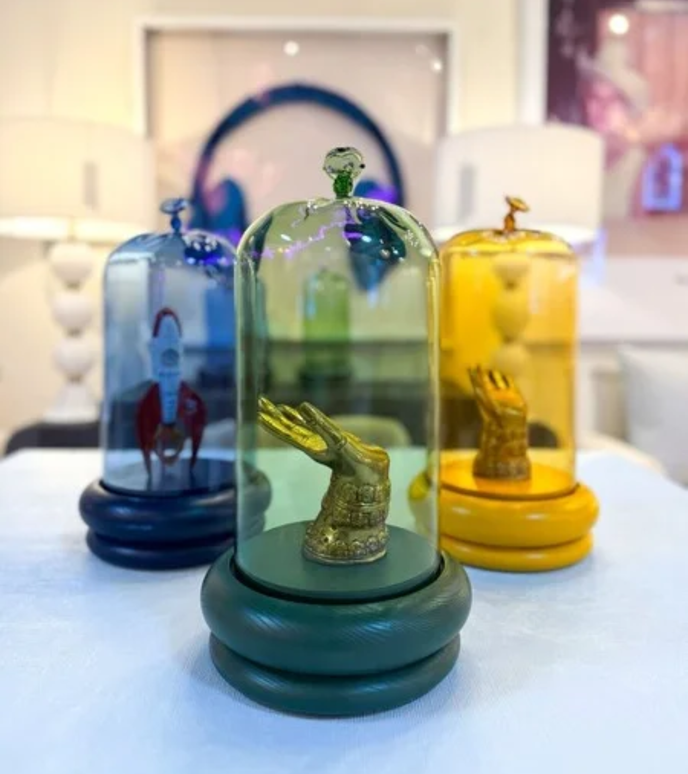 Dekoratívna sklo sklenená Balloon to jemná, ale pritahujúca zrak ozdoba, ktorá spája v sebe remeselnú realizáciu a modernú estetiku. Vyrobený s odolného skla borosilikátového a usadený na pevným základom s dreva jasenového, umožňuje v elegantný spôsob vystavovať Twoje Vaše predmety. oblúbené Jeho tonálne farebné sklo jemne filtruje svetlo, vnášajúc do interiéry teplo a individuálny charakter. To dekoratívne sklenené dekorácia, ktorá dokonalé skontroluje sa v salón spálni, domácej v kancelárii či kuchyne.