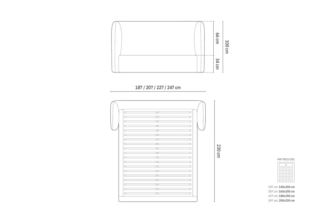 Posteľ Miley nie je len pôsobivá, ale aj praktická – vybavená priestranným úložným priestorom na posteľnú bielizeň, ktorý sa otvára spredu pomocou plynových piestov. Je to ideálna voľba pre tých, ktorí si cenia spojenie estetiky, funkčnosti a komfortu v spálni.