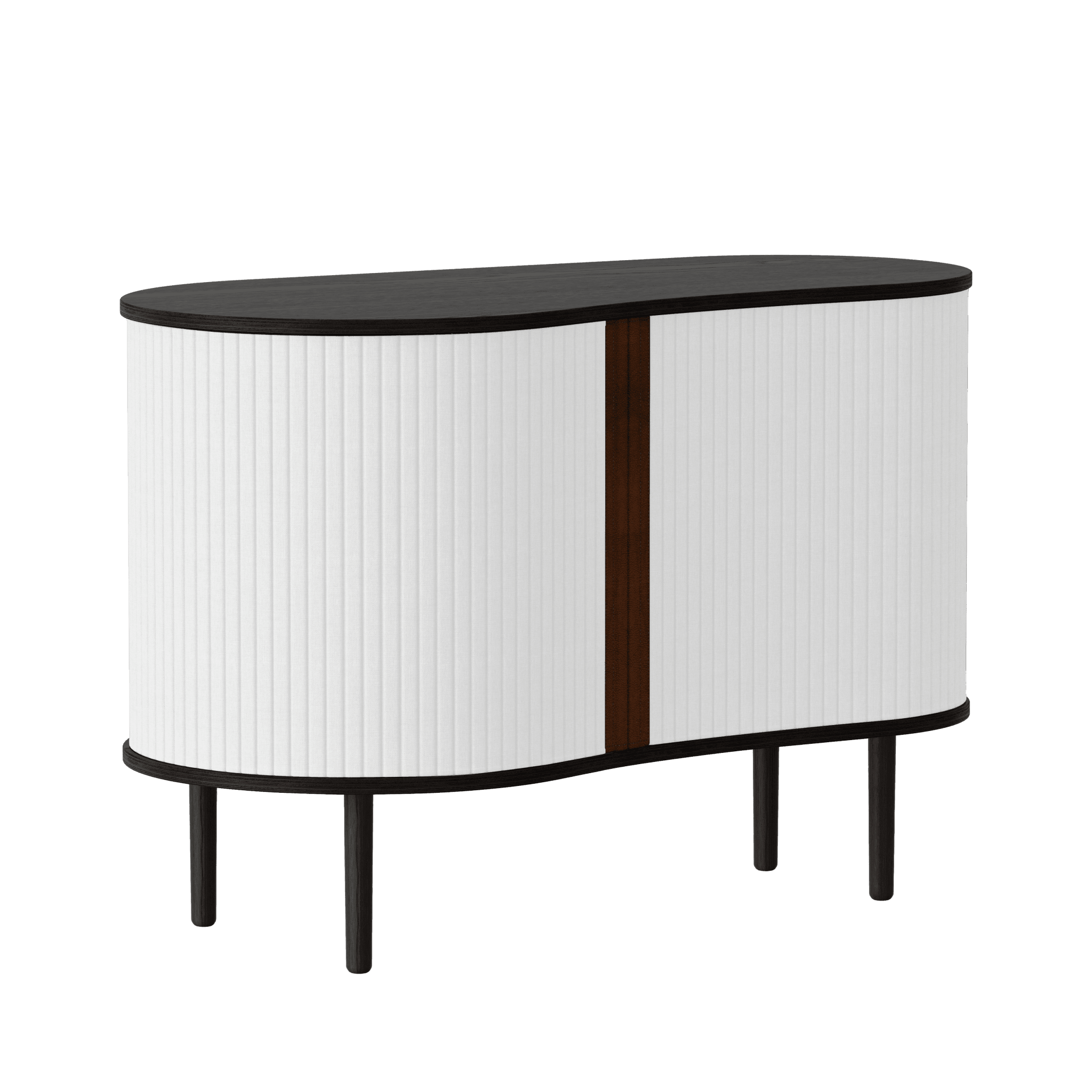 Komoda je dostupná v troch výrazných farbách: dubovej, tmavodubovej a čiernej dubovej, so žalúziami dostupnými v starostlivo vybraných odtieňoch látky Horizons, ktorá je úplne z recyklovaných materiálov. Dôležité je, že žalúzie sú vymeniteľné, čo znamená, že ich môžete ľahko meniť sami, čím dodáte nábytku nový vzhľad a osviežite dizajn bez nutnosti kupovať úplne nový kus nábytku. Týmto nielen šetríte svetové zdroje, ale aj predlžujete životnosť nábytku.