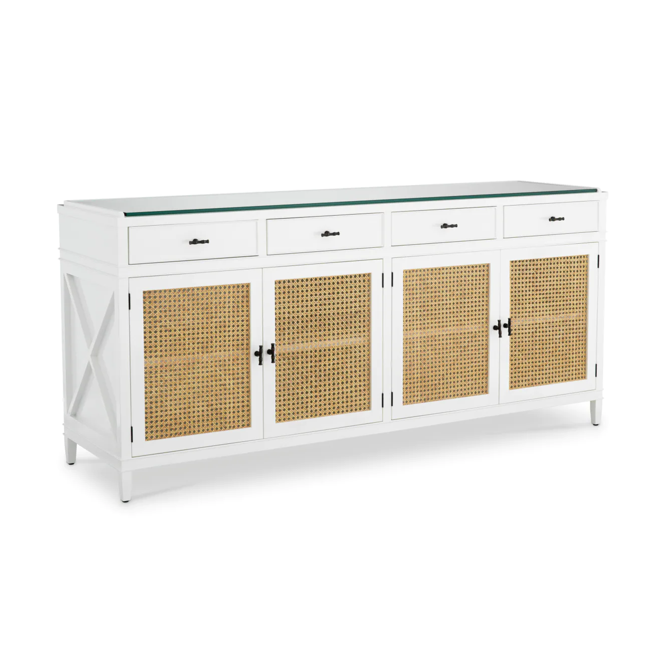 Prírodné akcenty z viedenskej pleteniny v kombinácii s priehľadným sklom vytvárajú dokonalú harmóniu moderného štýlu a klasickej estetiky. Subtílna elegancia a univerzálny charakter robia z komody ideálny doplnok do vkusných, štýlových interiérov.