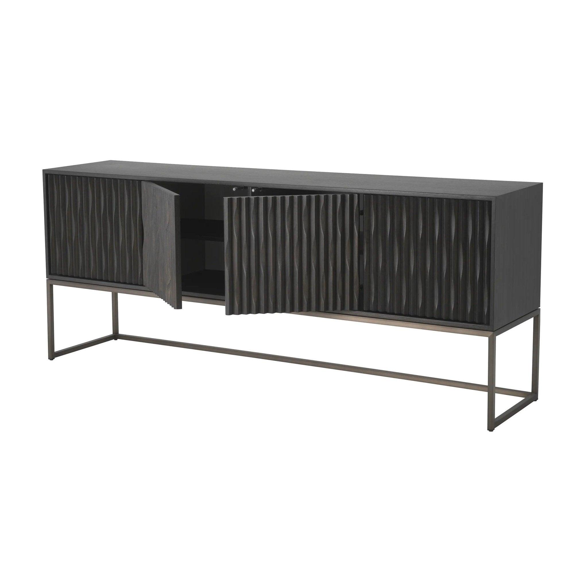 Vneste do svojej priestoru eleganciu a funkčnosť s komodou Brayden v grafitovom dubovom dyhe. Ak hľadáte nábytok, ktorý spája moderný dizajn, priestrannosť a pôsobivý vzhľad, komoda Brayden splní vaše očakávania.