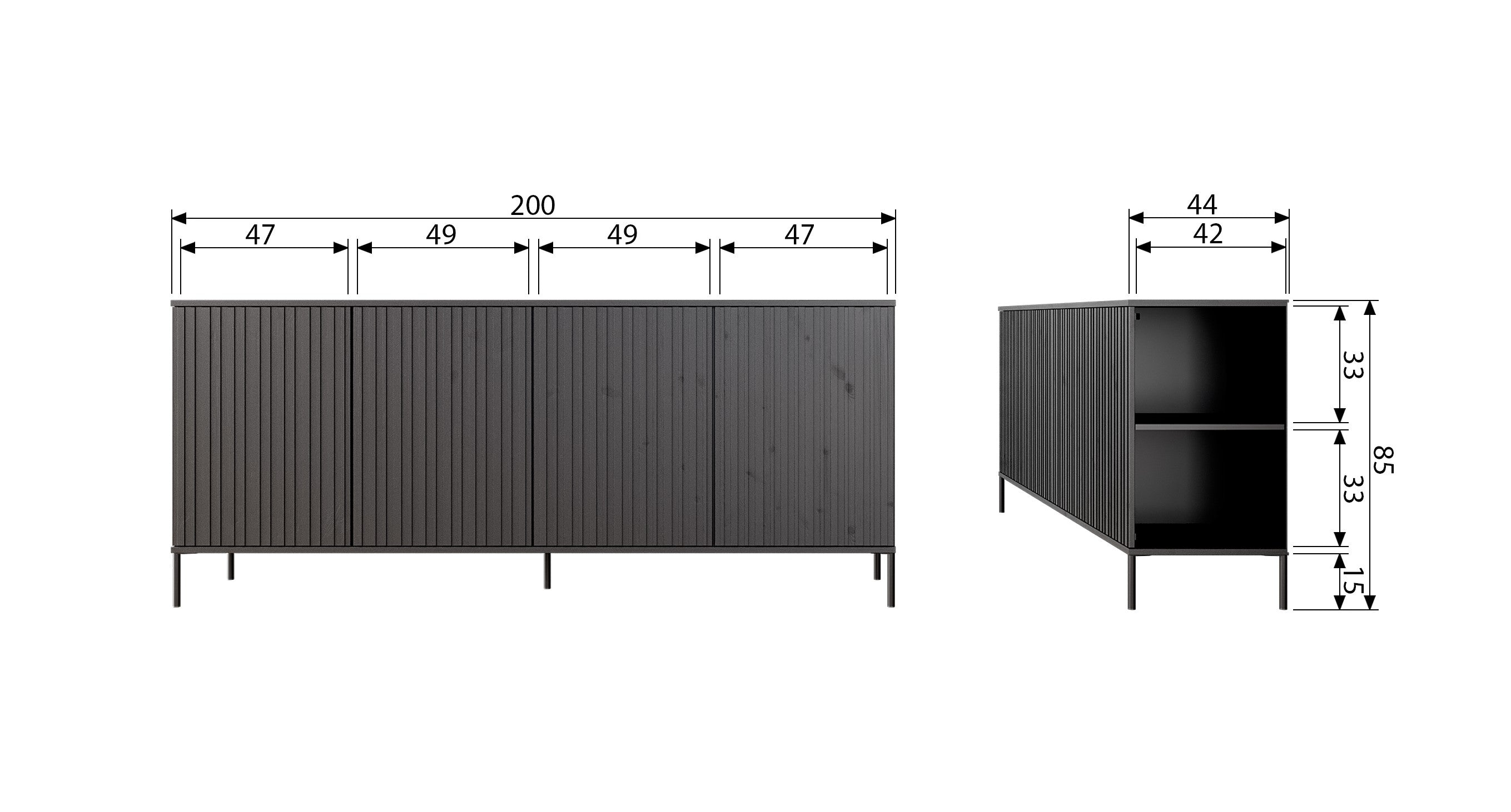 Materiały: drewno sosnowe z certyfikatem FSC, płyta wiórowa, metalu z czarną powłoką