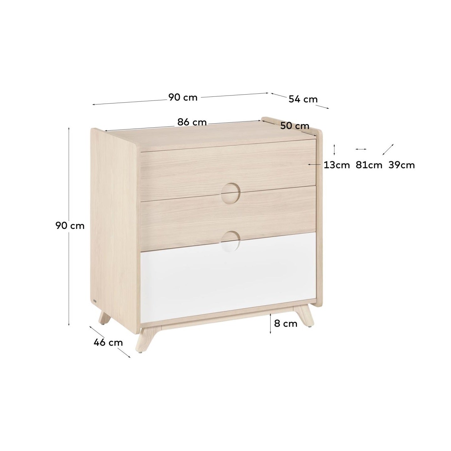 Komoda Nunila je funkčné riešenie na uskladnenie, ideálne pre potreby domácnosti. Vďaka svojej úlohe ako základ pre prebaľovací pult pre novorodencov, jasenová komoda Nunila sa stáva nielen praktickým nábytkom na organizáciu priestoru, ale aj centrálnym prvkom rodinného života.