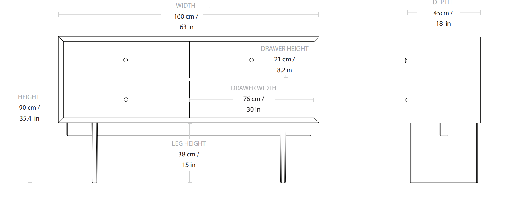 Štyri priestranné zásuvky so systémom tichého zatvárania ponúkajú veľa miesta na uskladnenie, ideálne sa hodia do obývačky, jedálne alebo spálne. Horná plocha komody môže slúžiť ako priestor na vystavenie dekorácií, kníh alebo umenia, čím podčiarkuje individuálny charakter interiéru. Komoda môže tiež fungovať ako elegantný voľne stojaci nábytok v otvorených priestoroch.