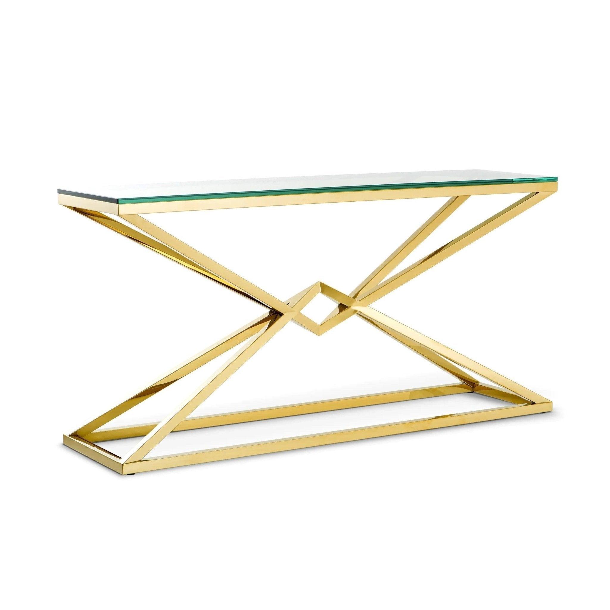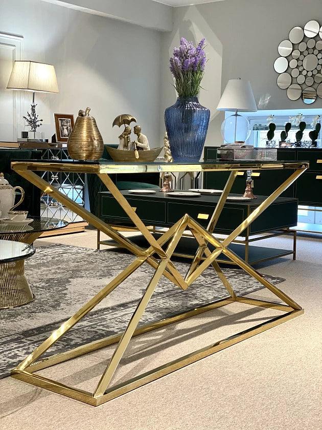 Zlatá konzola Connor nie je len dizajnový stôl, je to jasné vyhlásenie štýlu a rafinovanosti. Jej prítomnosť v priestore vnáša modernosť a eleganciu, pričom zostáva funkčná a všestranná. Je to nábytok, ktorý nielen ozdobí váš interiér, ale aj mu pridá jedinečný charakter a lesk.
