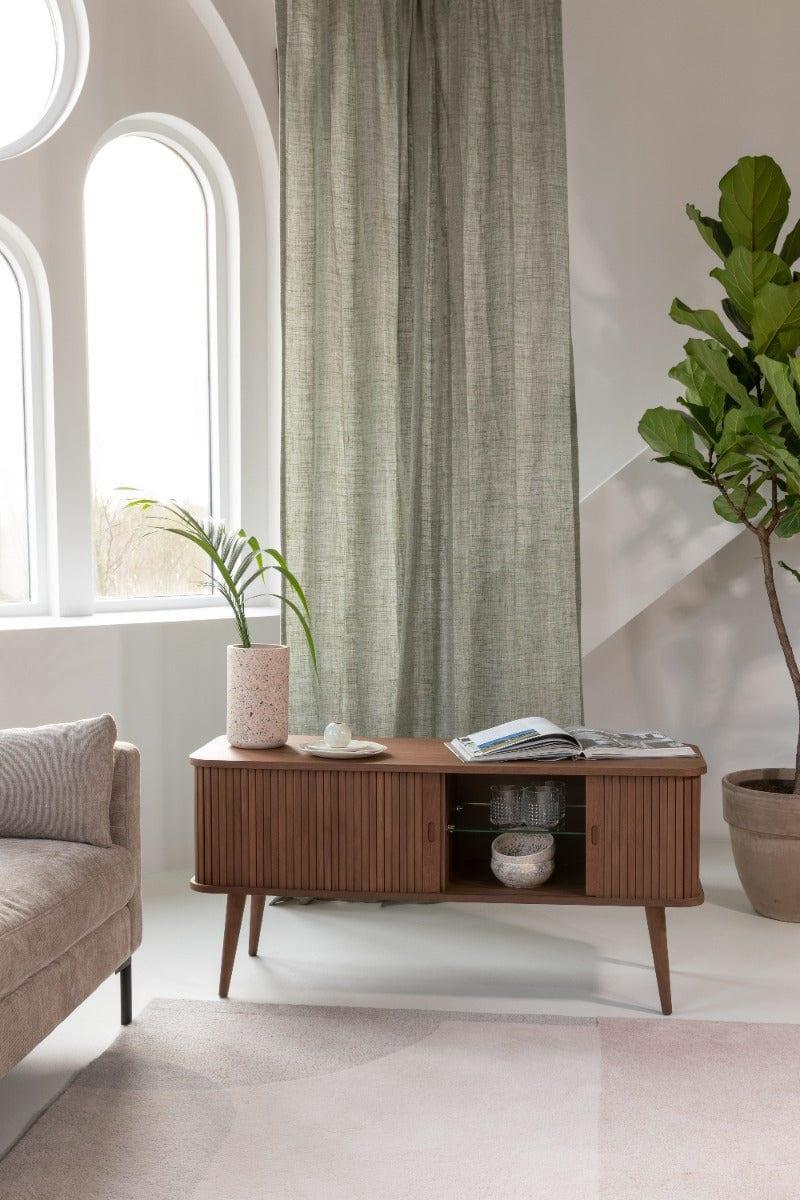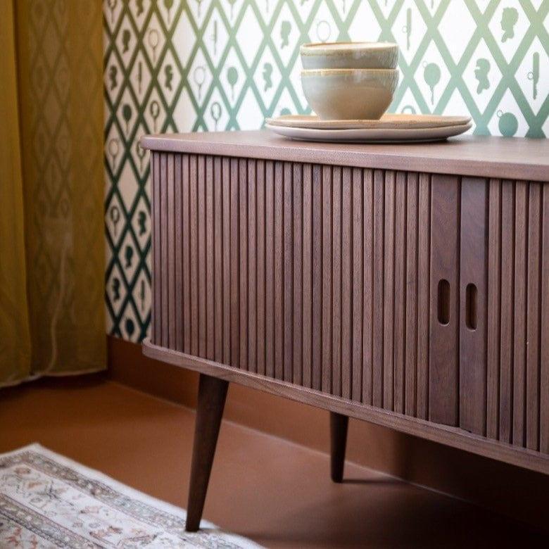 Komoda bola vyrobená z odolnej dosky MDF s orechovou dyhou. Nohy sú vyrobené z masívneho kaučukového dreva. Barbier krásne doplní interiér jedálne, spálne alebo predsiene. Navyše vytvorí jedinečnú aranžáciu s ostatnými nábytkami z tej istej série.