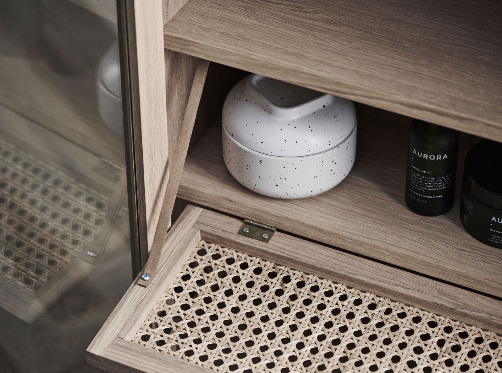 Kredenc Cana je elegantný kus nábytku, ktorý spája ľahkosť a funkčnosť, pričom dodáva interiérom výnimočný, pokojný charakter. Charakteristický front z prútenej tkaniny dodáva sérii ikonický vzhľad, inšpirovaný atmosférou dánskych prímorských hotelov, kde jednoduchosť a autenticita vytvárajú jedinečnú atmosféru. Priehľadný dizajn kredenca vnáša do interiéru harmóniu a priestrannosť, pripomínajúc minimalizmus ako v funkcii, tak aj vo vzhľade.