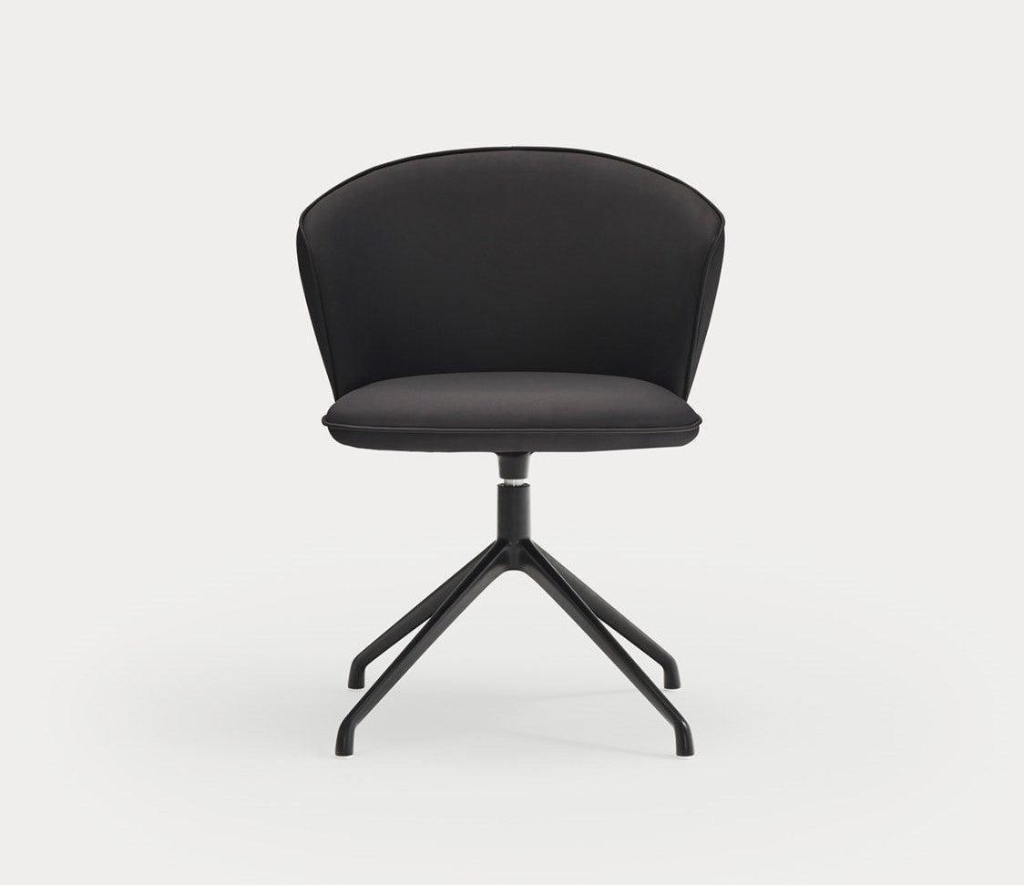 Stolička Add s čiernou ekokožou na čiernom základe nie je len elegantným prvkom vybavenia, ale aj symbolom pohodlia a ergonomickej podpory. Pri navrhovaní tejto stoličky bolo prioritou zabezpečiť používateľovi maximálne pohodlie a prispôsobenie sa jeho potrebám. Úplne čalúnené operadlo sa jemne ohýba okolo tela, dokonale sa prispôsobujúc prirodzeným krivkám, čo umožňuje voľný pohyb a zmenu polohy. Čierny základ so štyrmi nohami zabezpečuje stabilitu a umožňuje plný obrat, čo robí túto stoličku ideálnou voľbou do konferenčných miestností, kancelárií a verejných priestorov.