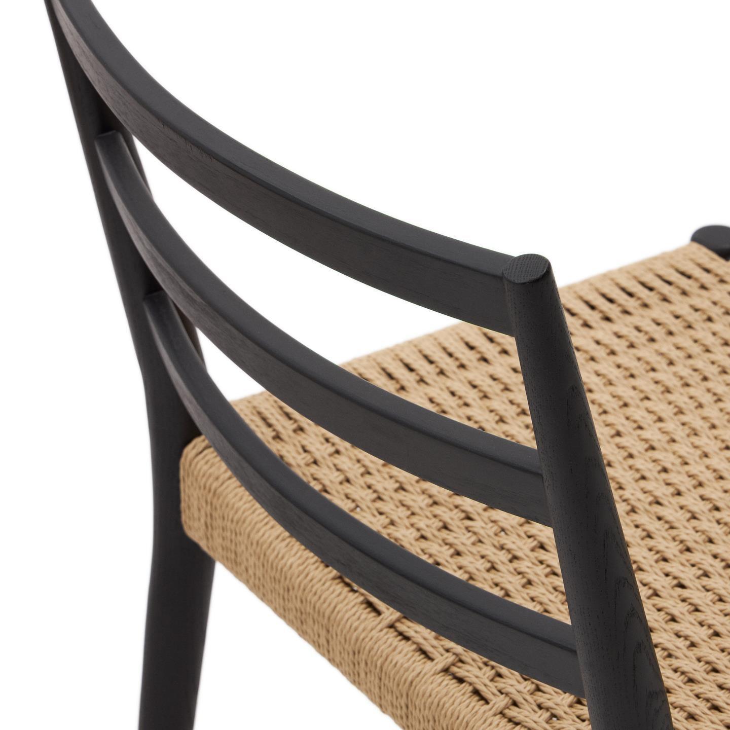 Sedadlo designerskej stoličky je vyrobené z papierového lana, ktoré bolo ručne spletené, čo dodáva nábytku jedinečný charakter a jemné dokončenie. Táto kombinácia dubového dreva a papierového lana robí stoličku nielen elegantnou, ale aj trvanlivou a funkčnou.