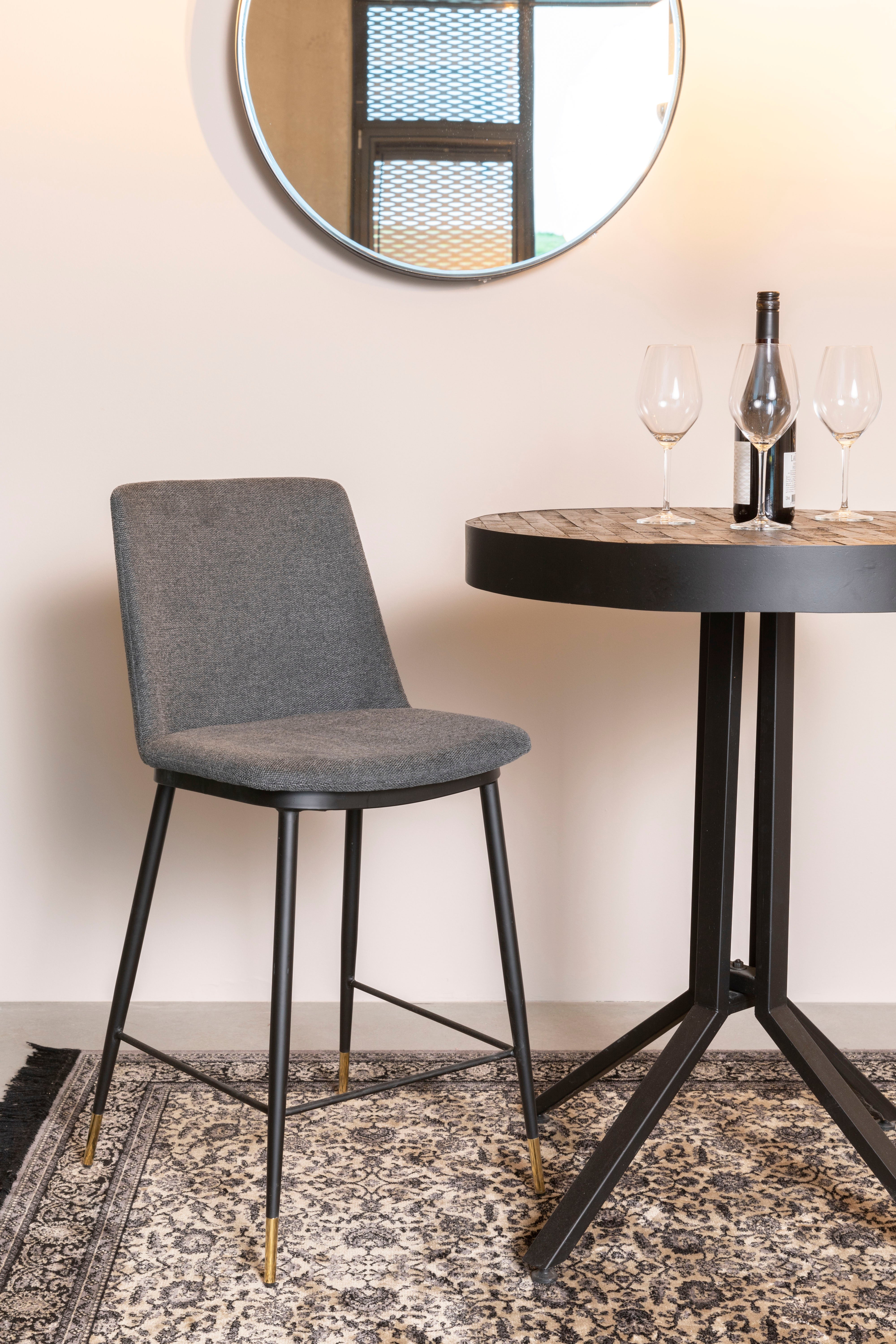 Barová stolička Lionel je spojenie moderného elegancie s rafinovaným štýlom, ktoré pridá triedu každému interiéru. Hoker sa vyznačuje pevným, čiernym, oceľovým podstavcom, ktorého výnimočného charakteru dodávajú jemné, zlaté nožičky. Sedadlo a operadlo stoličky sú čalúnené tmavosivou tkaninou, ktorá dodáva nábytku elegantný a univerzálny vzhľad, ideálne sa hodí k rôznym aranžmánom interiérov. Barová stolička Lionel je vynikajúcou voľbou do kuchyne, jedálne alebo baru, prinášajúc do priestoru výnimočný štýl a pohodlie.
