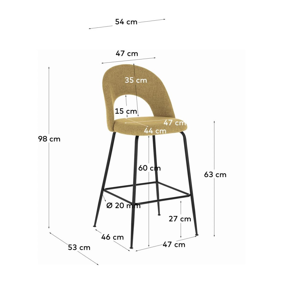 Barová stolička MAHALIA horčicová