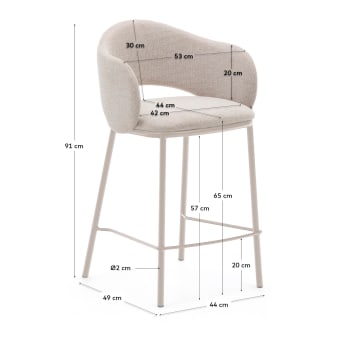 Barová stolička Maina je harmonickým spojením pohodlia inšpirovaného štýlom päťdesiatych rokov s modernou estetikou. Vďaka ideálnej rovnováhe medzi klasickou formou a súčasným spracovaním, barová stolička vnáša do interiéru eleganciu a útulné teplo. Čalúnené mäkkým šenilom v béžovej farbe sedadlo zabezpečuje pohodlie pri používaní, a jemná farebnosť robí barovú stoličku dokonalým doplnkom do rôznych aranžmánov kuchýň a barových zón.