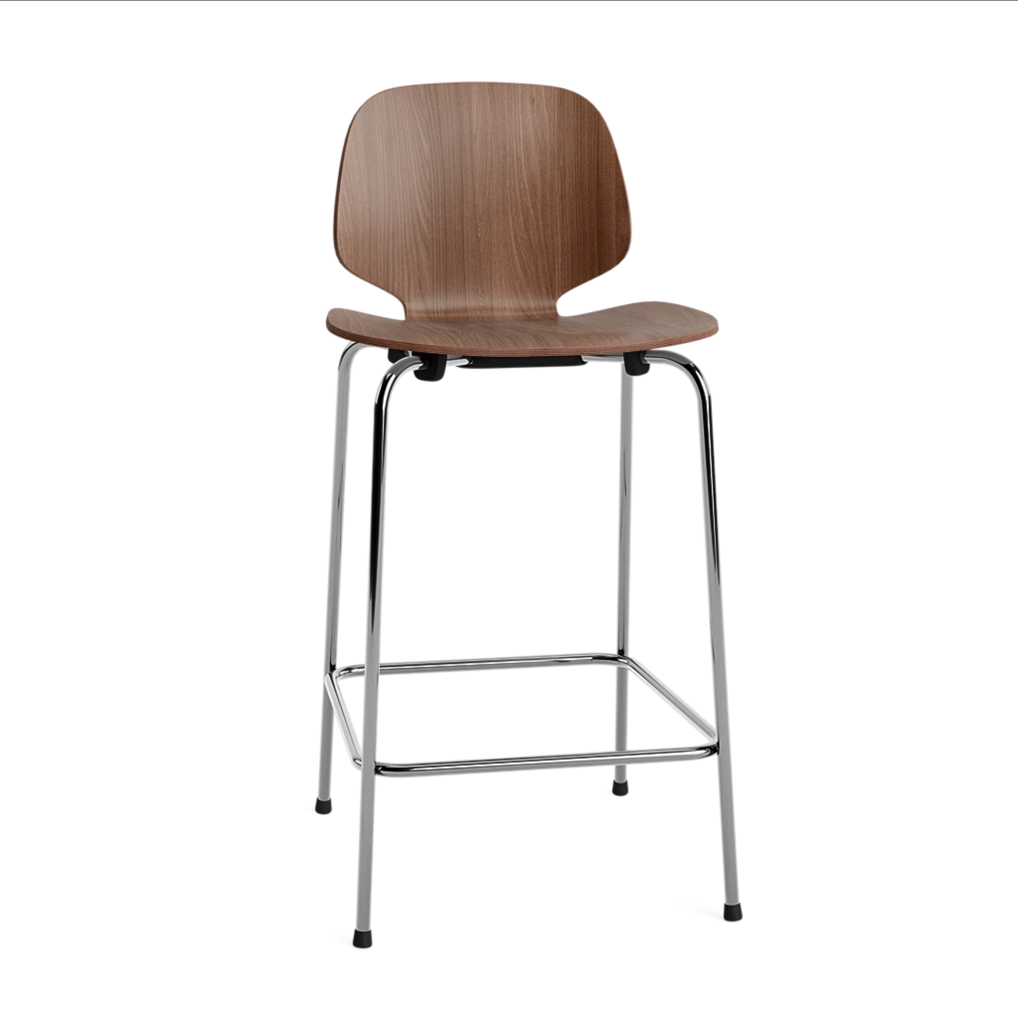 Barová stolička MY orechová dyha s chrómovaným podstavcom