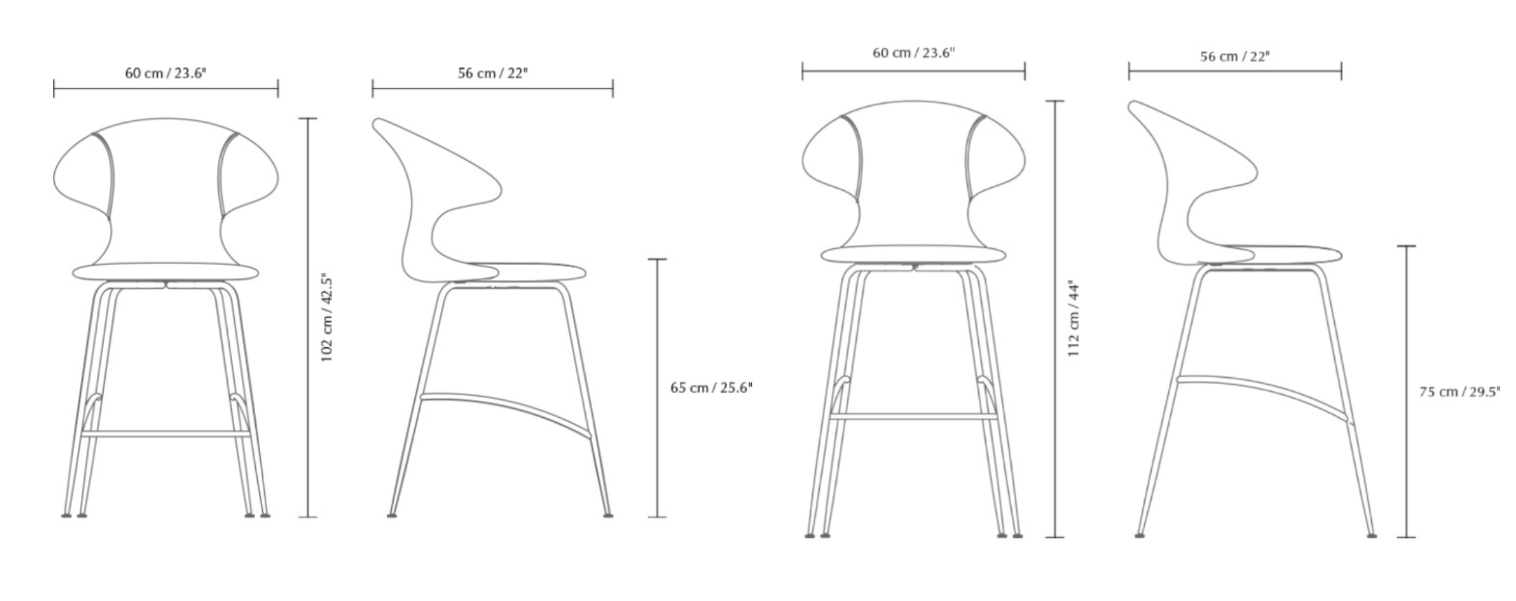 Wysokość od podłogi do siedziska: 65 / 75 cm