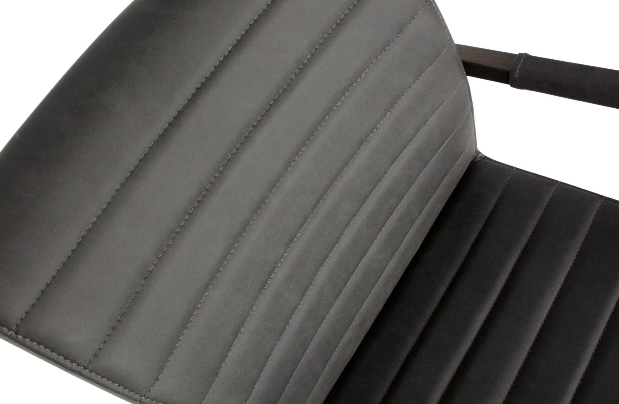 Stolička so podrúčkami Bas je moderný návrh pre tých, ktorí milujú minimalizmus. Klasická, antracitová farba sa skvele kombinuje s čiernym podstavcom, ktorý dodáva zaujímavý tvar konštrukcie. Kožené podrúčky na podstavci zabezpečujú komfort a pohodlie pri používaní stoličky Bas.
